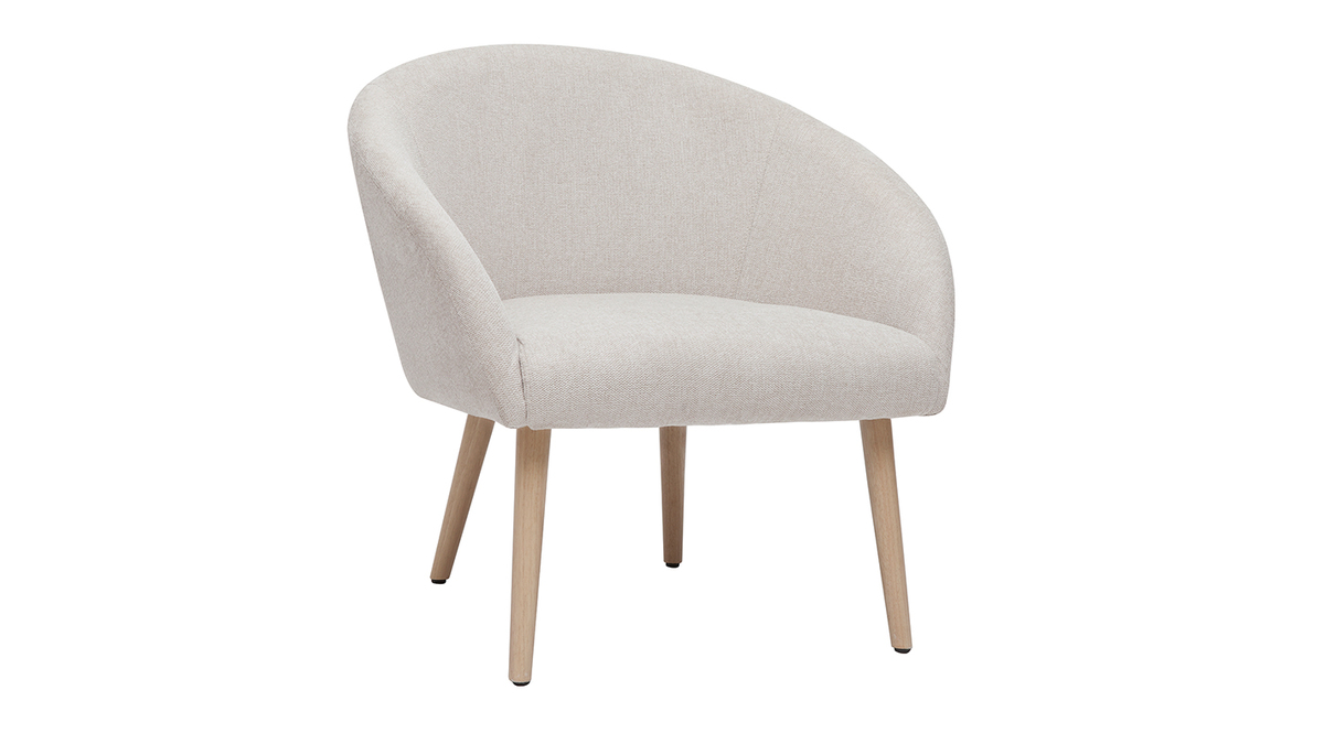 Empreintes de douceurs, les lignes minimalistes dessinent avec simplicité des volumes épurés aux bords lisses et galbés. Tout en rondeur, le siège habillé d'un tissu effet velours texturé beige forme un harmonieux tandem avec le piètement en bois clair. À la fois élégant et épuré, accueillant et chaleureux, ce fauteuil appelle à la détente. Si dans un décor à l'inspiration scandinave en quête d'esprit cocooning OLIVIA sera du plus bel effet, son coloris et sa silhouette intemporels s'intégreront facilement dans de nombreux styles d'intérieur.