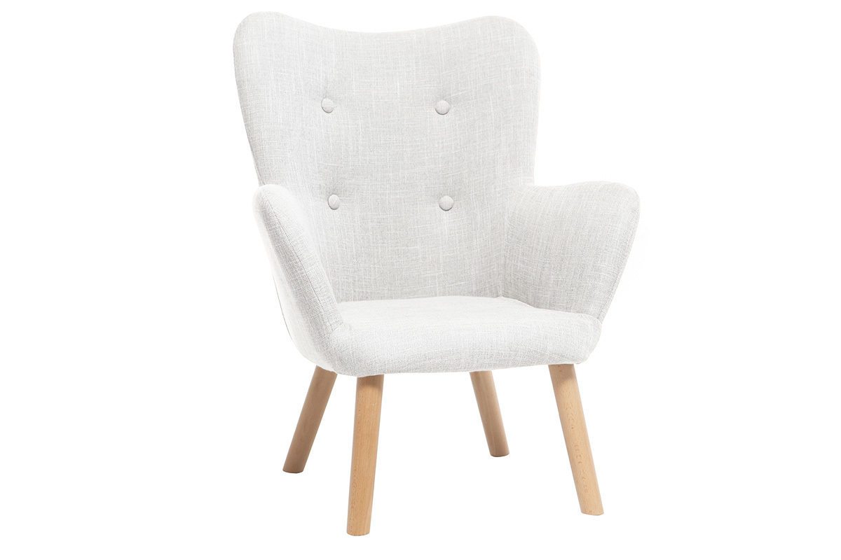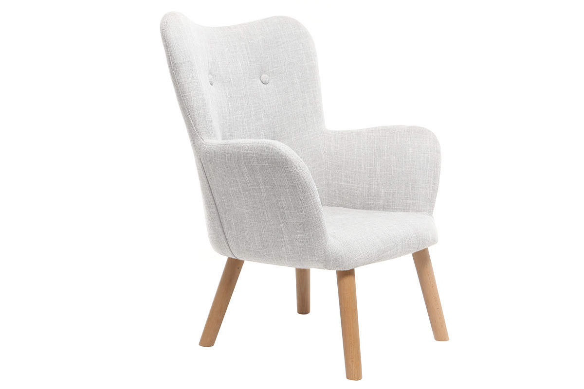 En effet, ce fauteuil possède un esprit nordique grâce à son revêtement en polyester associé à son piètement en bois clair.