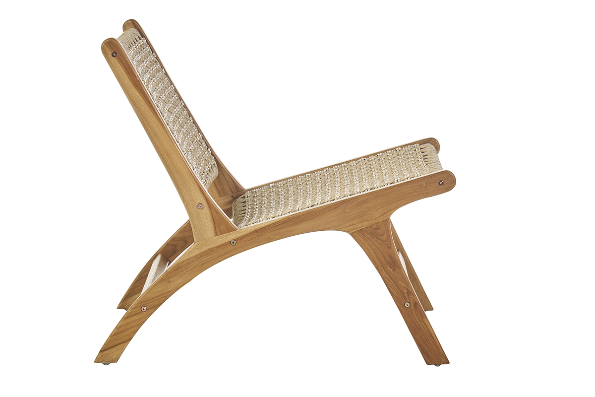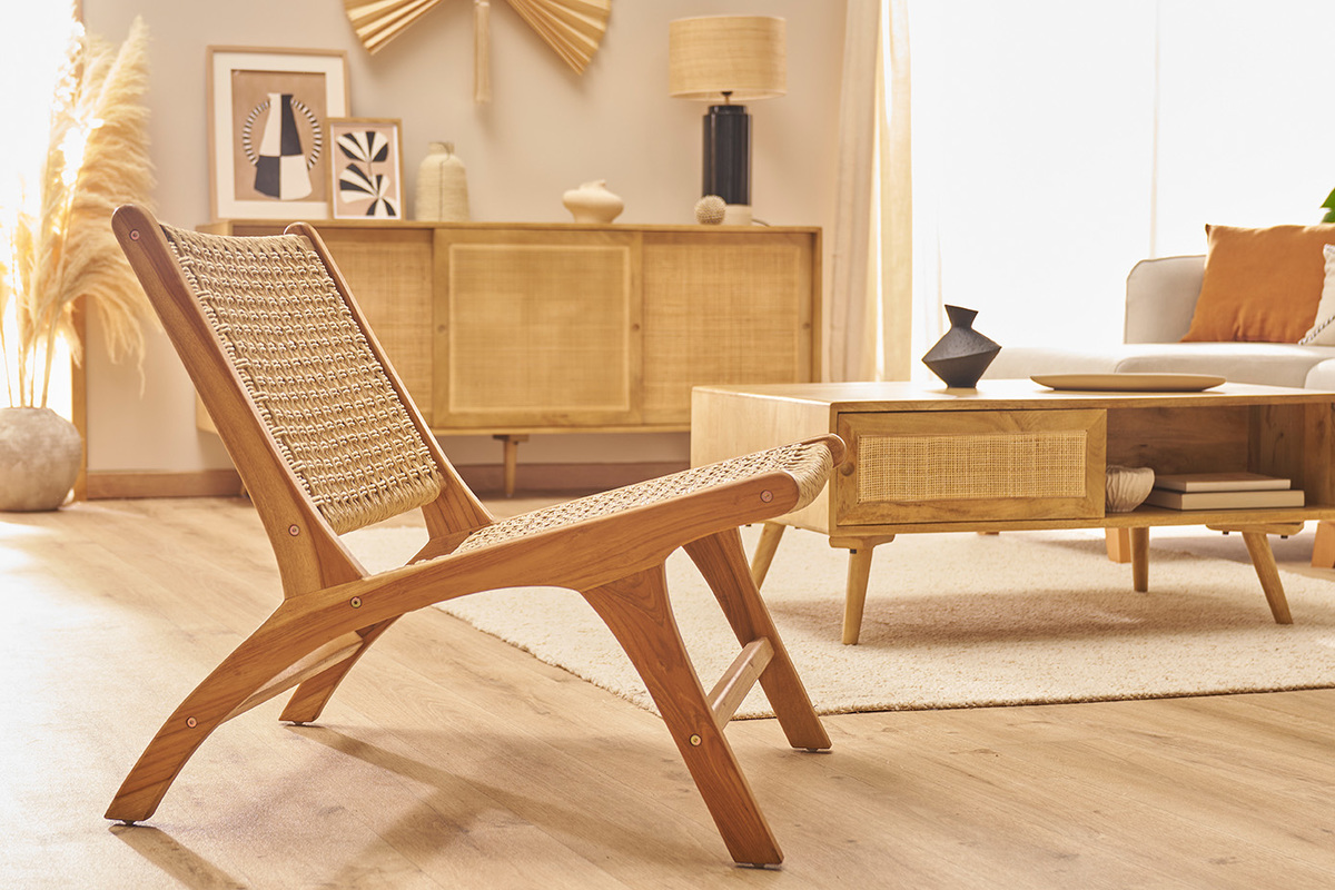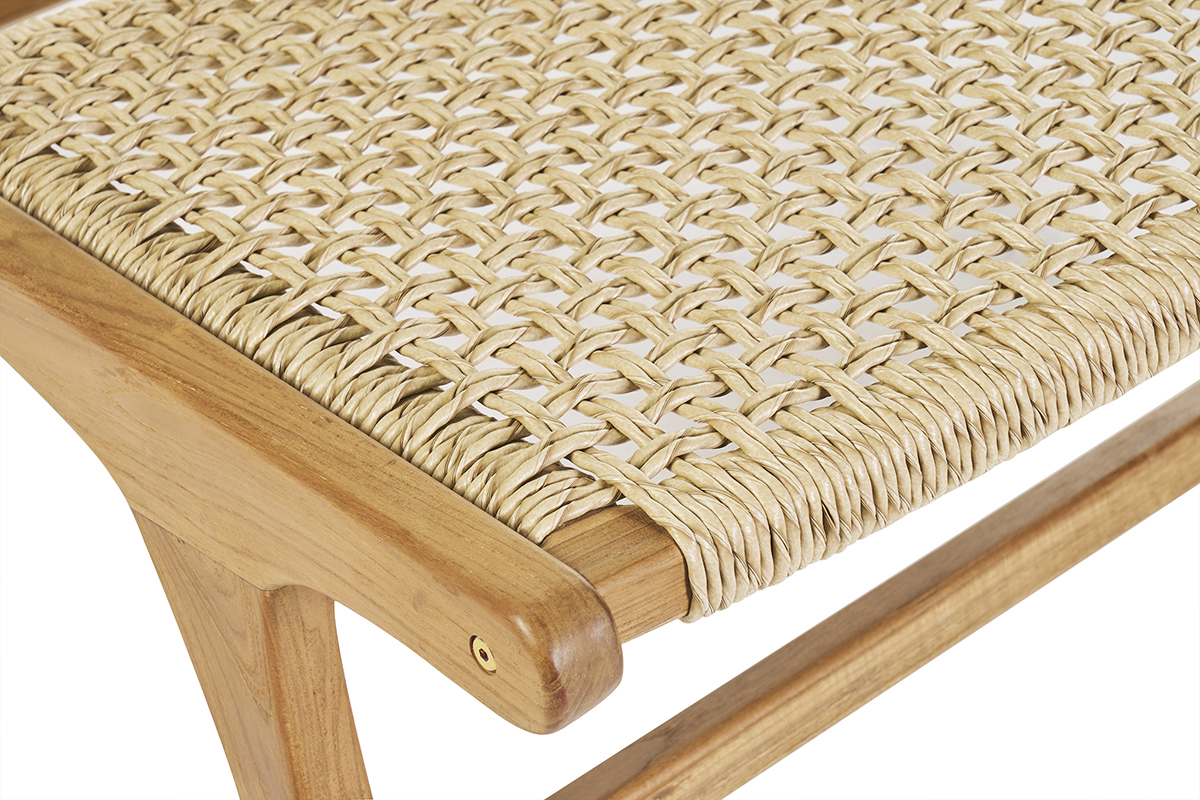 Le bois de teck, matériau noble et résistant, constitue l'ossature de ce fauteuil. Reconnu pour sa durabilité exceptionnelle, le teck confère au SUMBA une longévité incomparable. Ses tons chauds aux reflets dorés et naturels apportent une touche chaleureuse à votre espace de vie, que ce soit dans un salon, une véranda ou même en extérieur couvert. Les lignes douces et incurvées de la structure assurent un confort optimal tout en offrant une assise enveloppante.