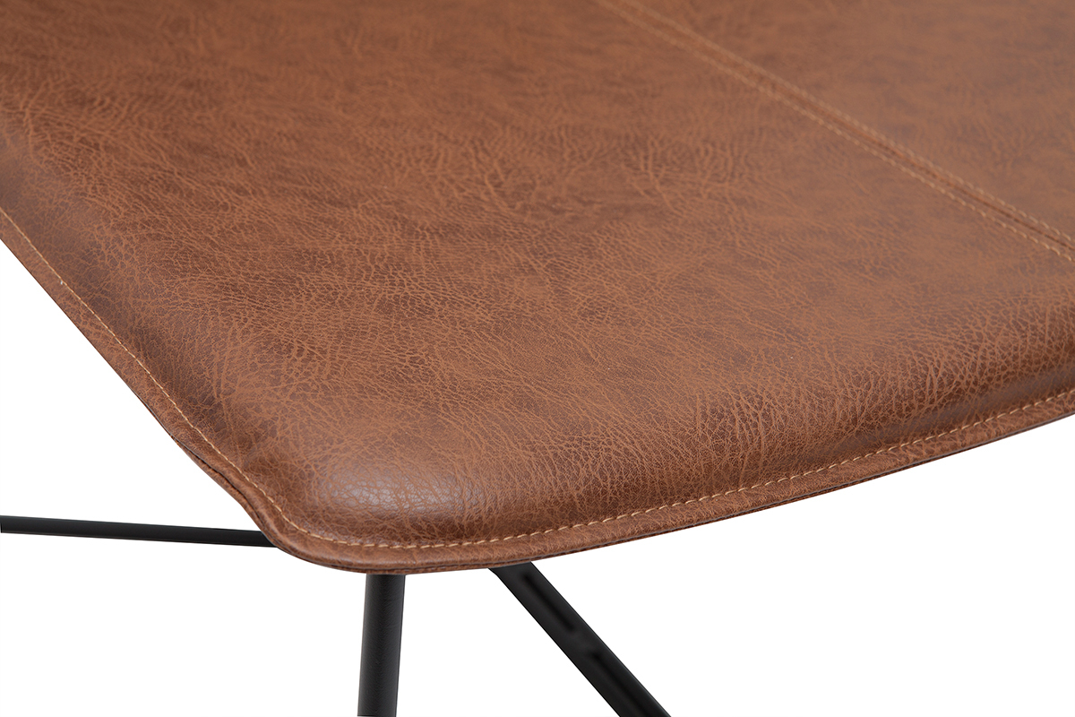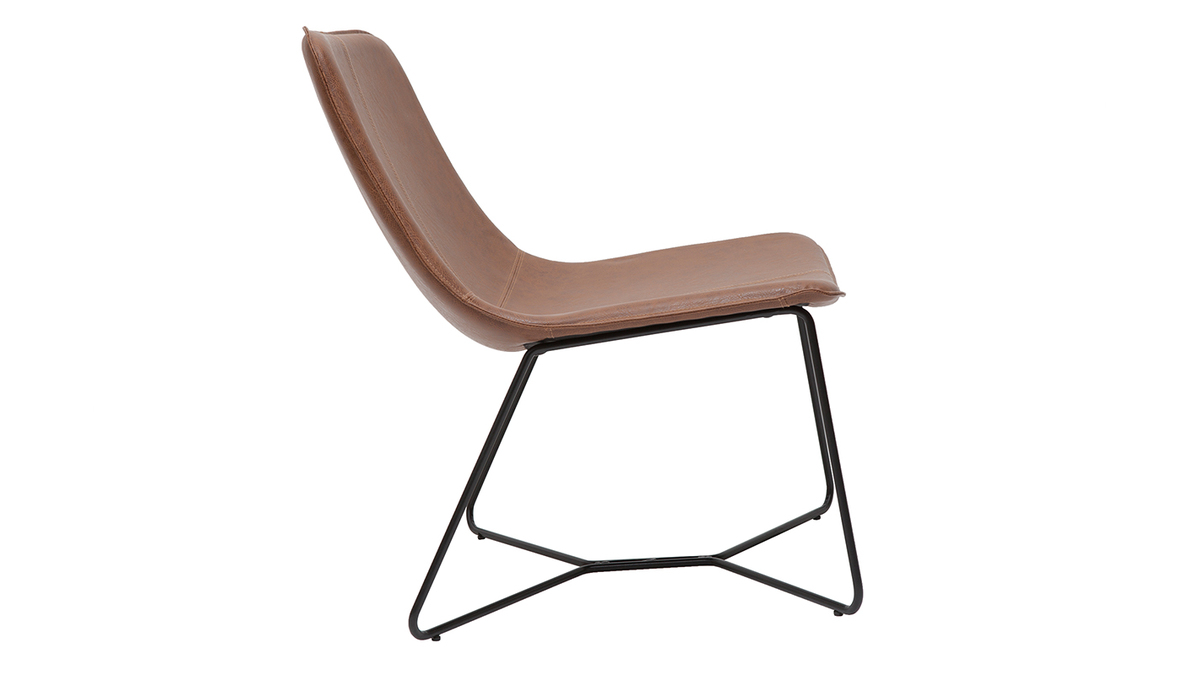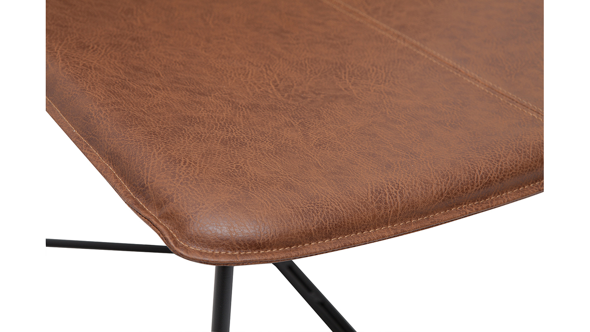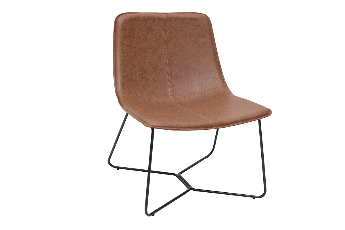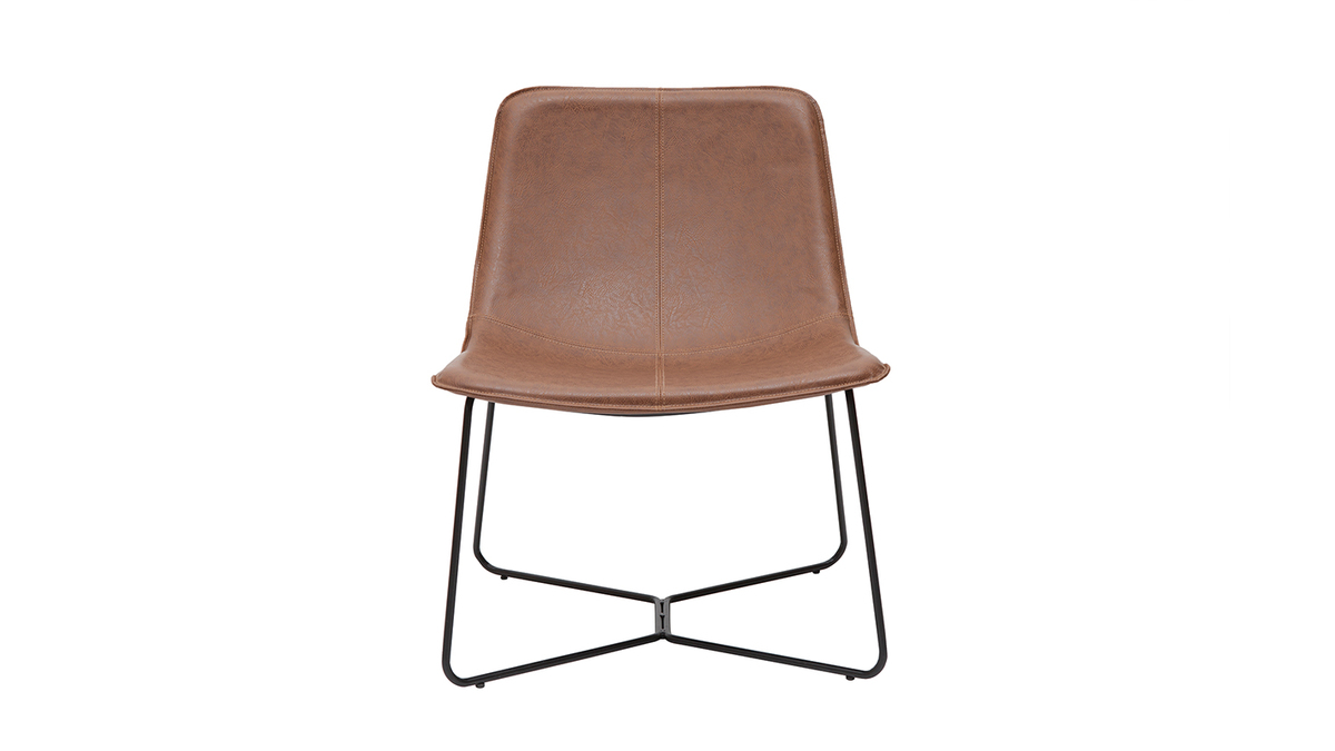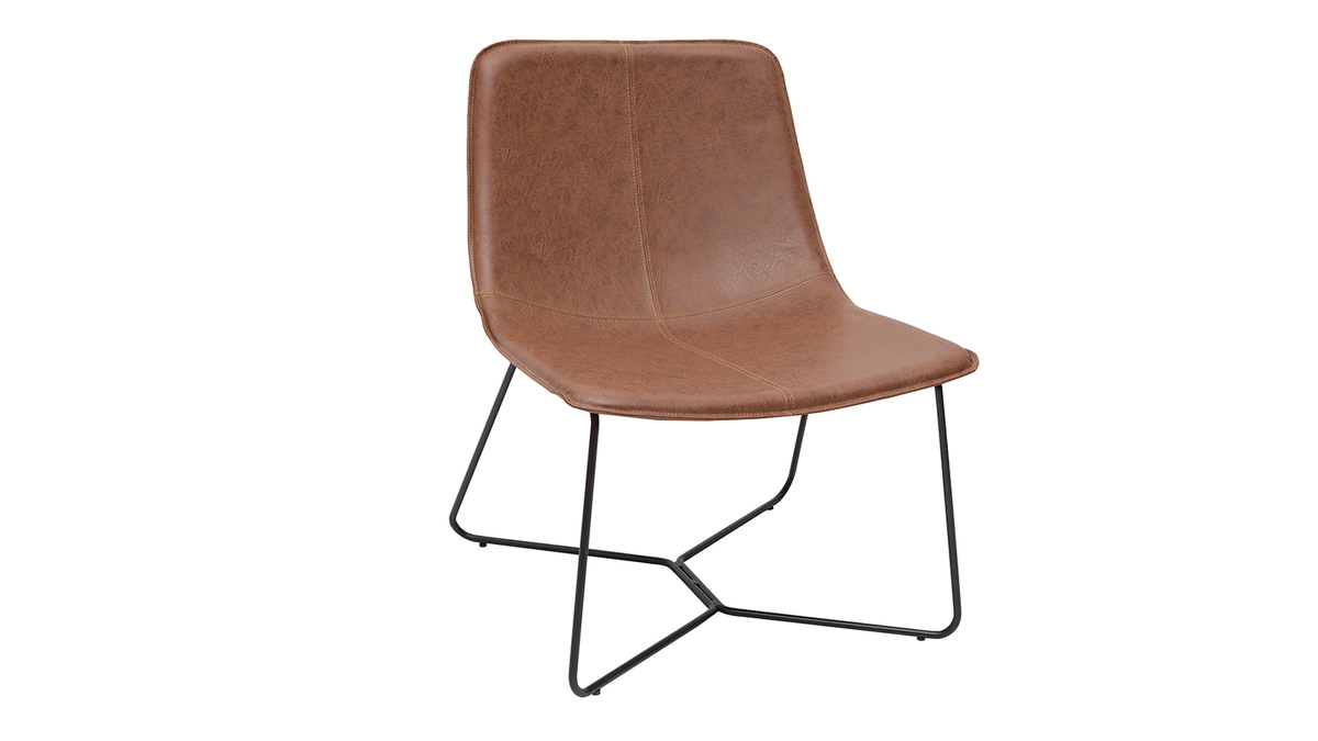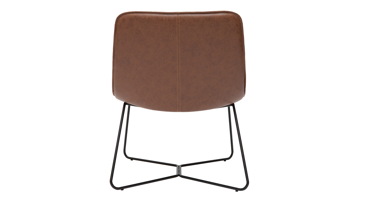 Du piètement à l'assise, chez SANTI, tout nous rappelle l'esprit indus-vintage. Avec un piètement fin en métal noir et un siège en PVC marron à l'aspect vieilli, ce fauteuil coche toutes les cases en matière de style. Silhouette aérienne, mix de matières et finition patinée forment un fauteuil tendance qui donnera beaucoup de caractère à votre pièce !