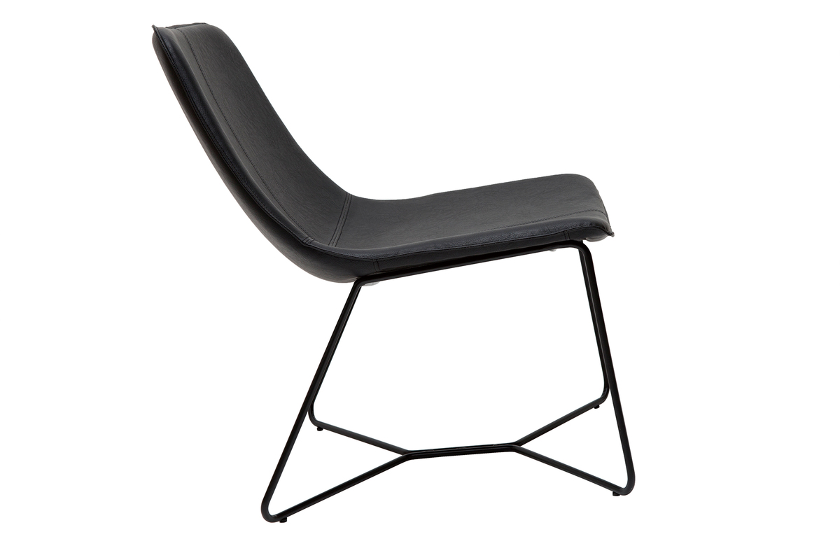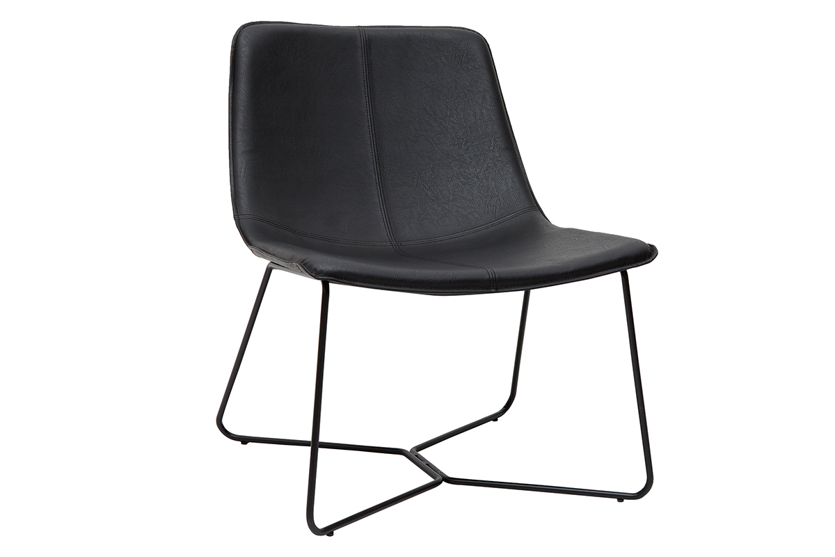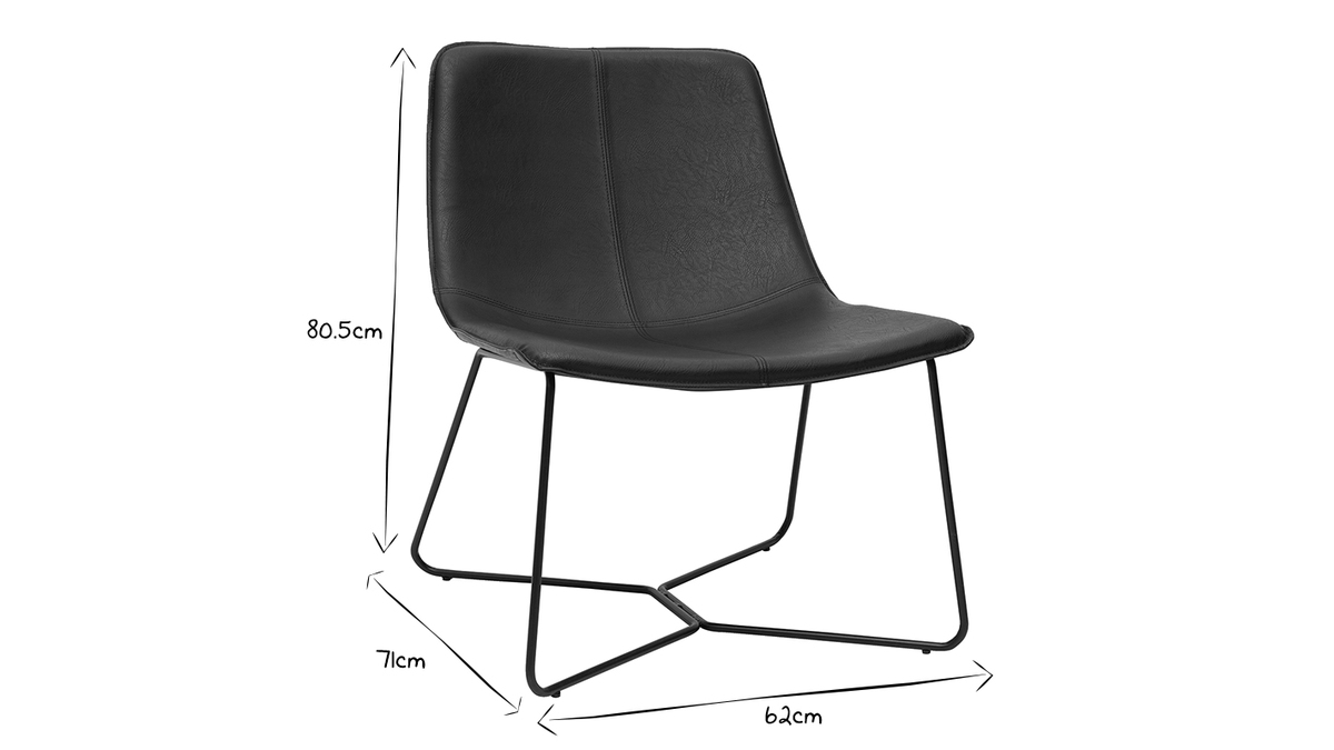 Du piètement à l'assise, chez SANTI, tout nous rappelle l'esprit indus-vintage. Avec un piètement fin en métal noir et un siège en PVC de la même teinte à l'aspect vieilli, ce fauteuil coche toutes les cases en matière de style. Silhouette aérienne, mix de matières et finition patinée forment un fauteuil tendance qui donnera beaucoup de caractère à votre pièce !