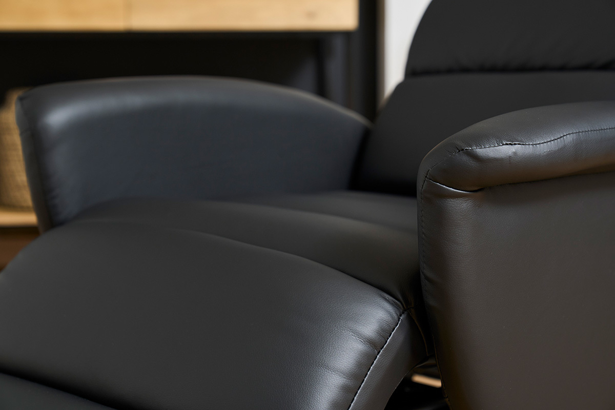 Le dossier et le repose-pieds du fauteuil relax NELSON s'inclinent tout naturellement en exerçant une pression sur les accoudoirs et le dossier (poignée latérale). Le passage de la position assise à la position relax se fait ainsi très simplement (degrés d'inclinaison max 145 degrés). Le repose-pied s'incline simultanément que le dossier. Ce fauteuil relax se bloque dans la position souhaitée sans difficulté !