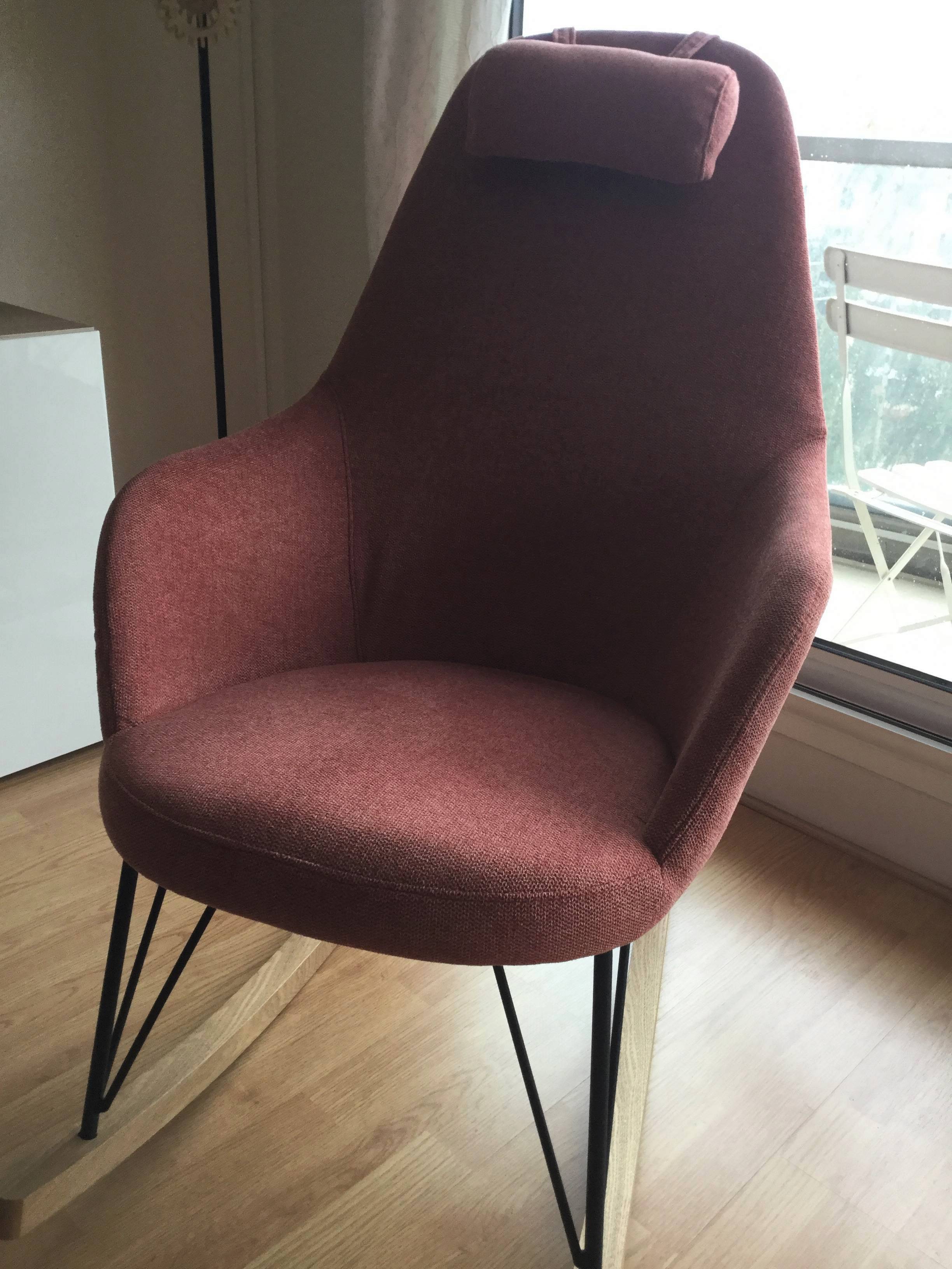 Ce fauteuil relax rappelle les assises scandinaves, leurs matériaux chaleureux et leur design minimaliste. Mais ce qui fait l'originalité du modèle JHENE, c'est qu'il associe à ce style nordique un piètement moderne et original en métal et frêne. Le mélange entre tissu, bois et structure métallique offre un rendu unique.