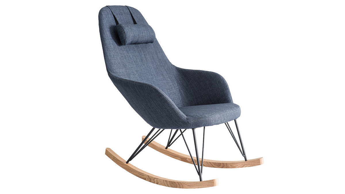 Entrez dans un univers de détente absolue avec le rocking chair bleu jean JHENE !