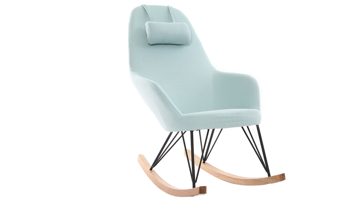 Entrez dans un univers de détente absolue avec le rocking chair vert d'eau JHENE !