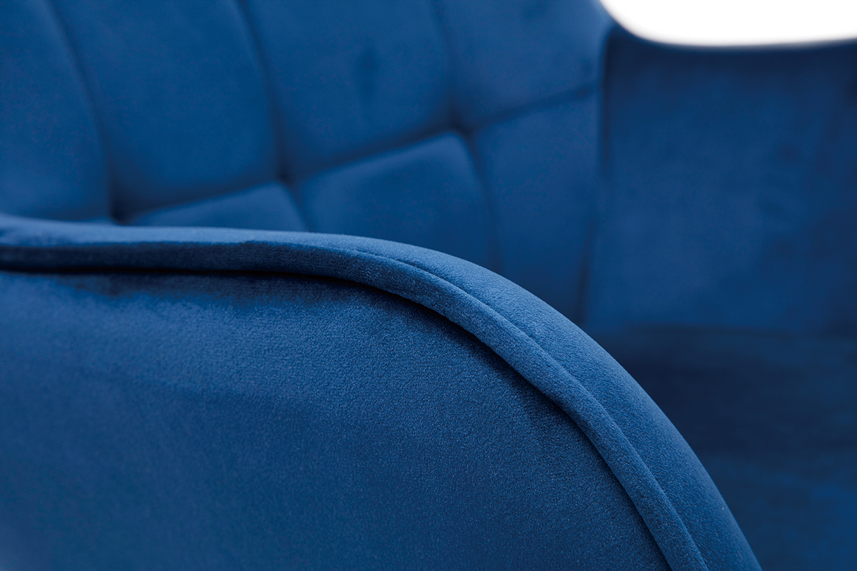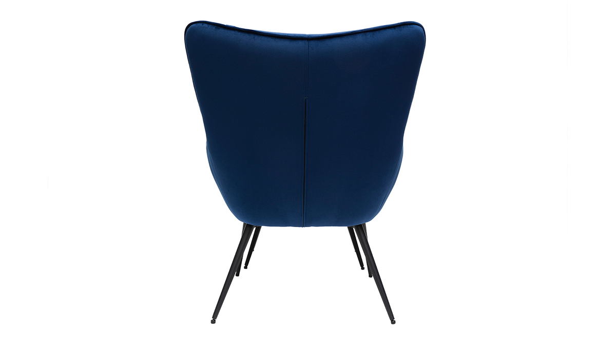 C'est sa forme évasée et son motif géométrique qui interpellent en premier. Du piètement au dossier, tout a été travaillé pour donner un style moderne à ce siège. Si l'assise en velours garnie de mousse (30 kg/m3) apporte une touche chaleureuse et tout le confort nécessaire à des instants détente interminables, les pieds en métal fin allègent l'ensemble donnant un effet aérien et design.