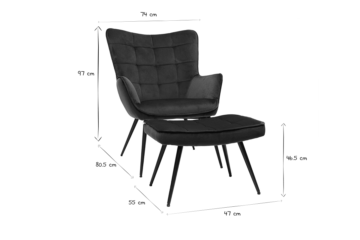 Dimensions fauteuil : L74 x P80.5 x H93-97 cm