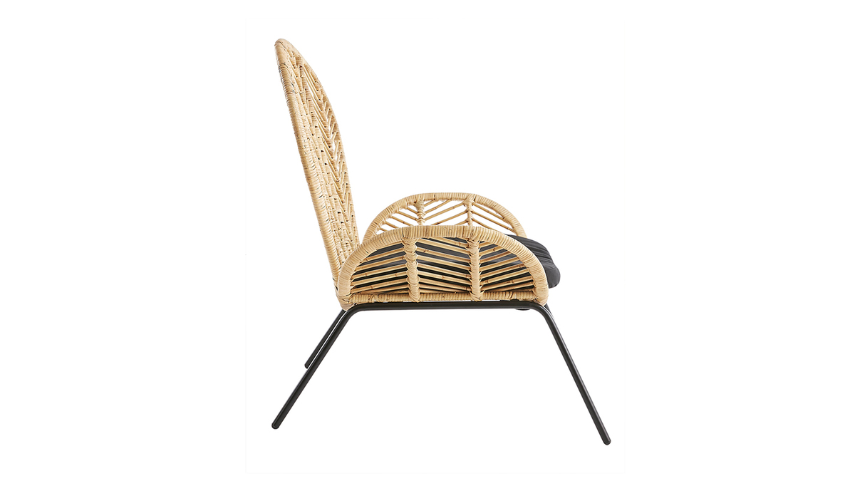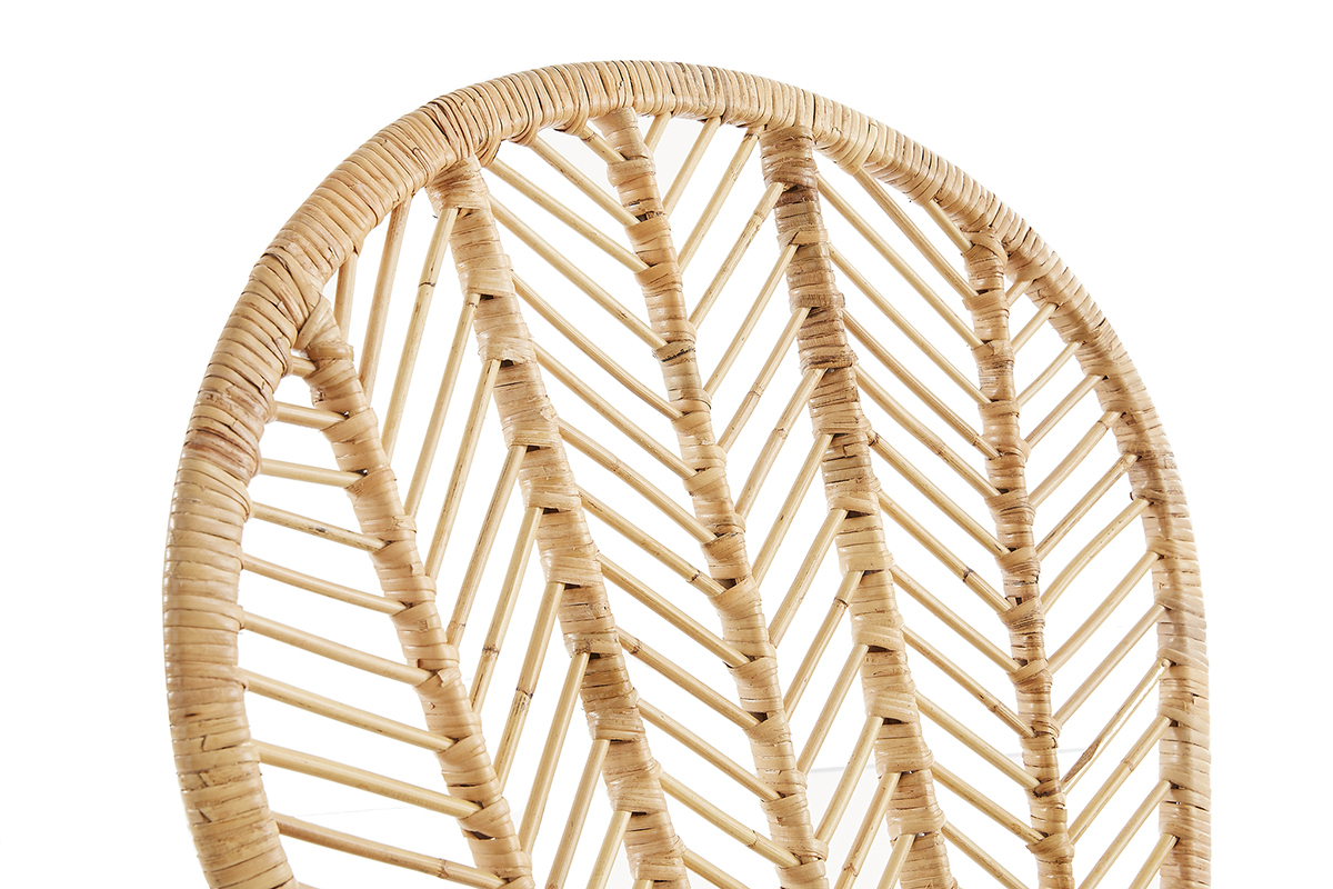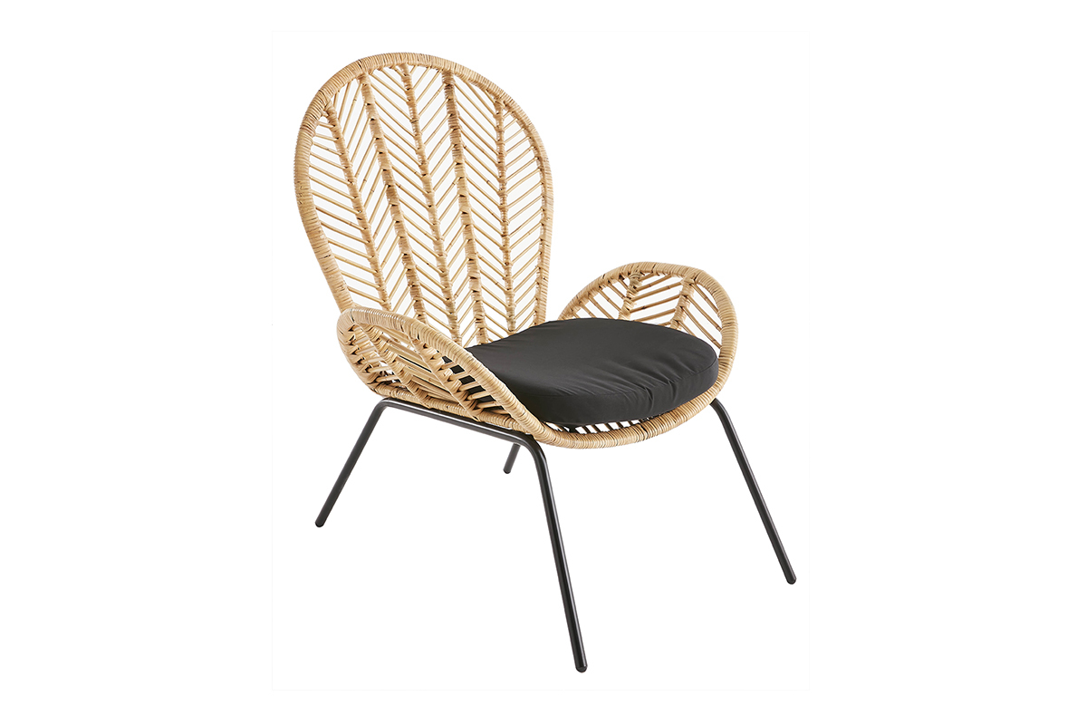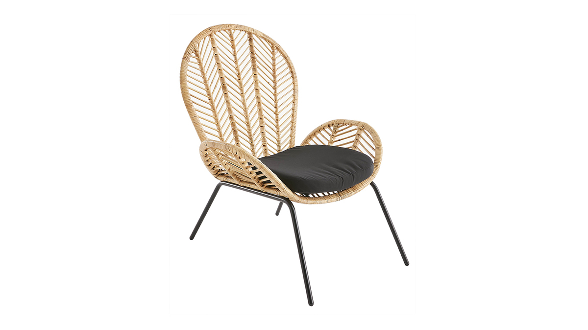 Les lignes de son dossier en rotin tressé s'étendent jusqu'aux accoudoirs pour créer une silhouette fluide. Cette belle matière naturelle se marie parfaitement avec une assise en coton drill et des piétements modernes en métal noir. Fruit d'un savoir-faire artisanal, ce fauteuil tendance possède tout le charme des pièces faites à la main. Sa place sera toute trouvée dans une ambiance ethnique comme bohème !