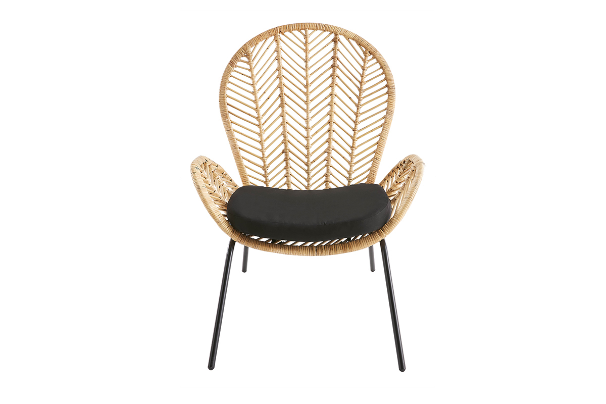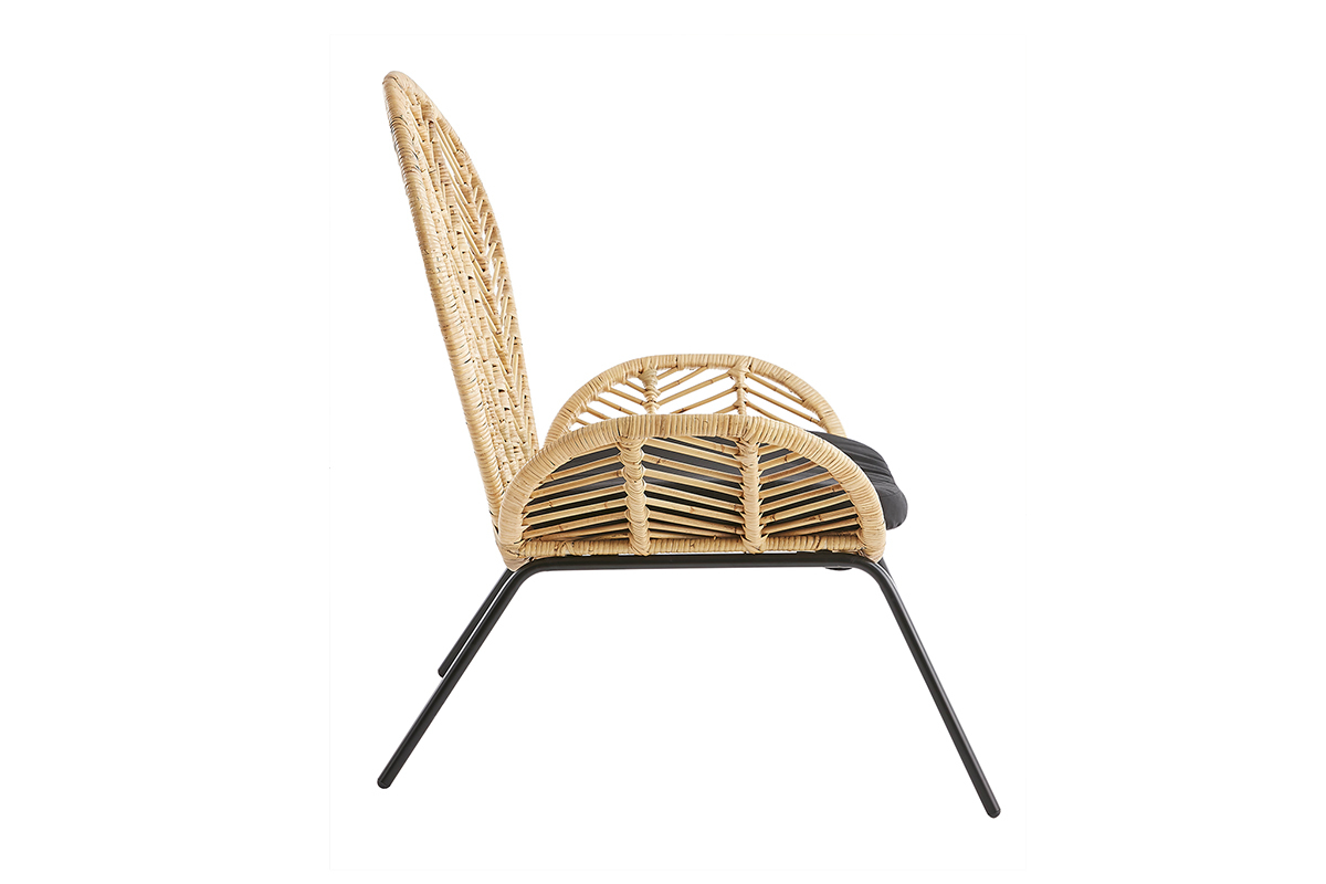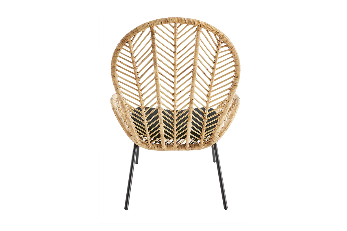 Les lignes de son dossier en rotin tressé s'étendent jusqu'aux accoudoirs pour créer une silhouette fluide. Cette belle matière naturelle se marie parfaitement avec une assise en coton drill et des piétements modernes en métal noir. Fruit d'un savoir-faire artisanal, ce fauteuil tendance possède tout le charme des pièces faites à la main. Sa place sera toute trouvée dans une ambiance ethnique comme bohème !