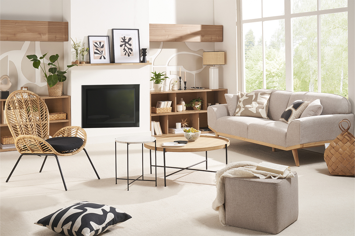 Salon, chambre, entrée : ce fauteuil ultra déco trouvera sa place dans toutes les pièces de la maison. Par son allure, il saura marquer les esprits et devenir un véritable incontournable de votre intérieur ! Console en manguier, table basse en acacia, suspension en rabane... On projette PEACOCK dans un décor où les matières naturelles règnent !