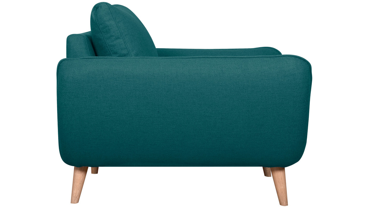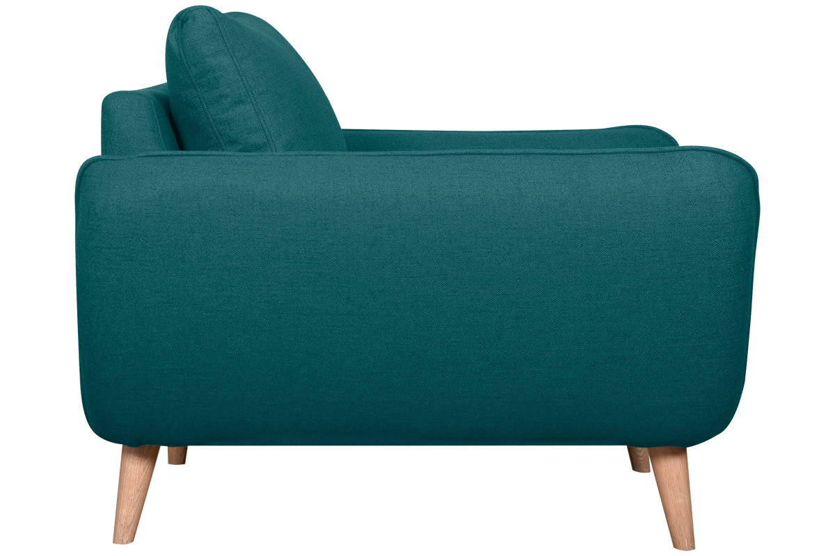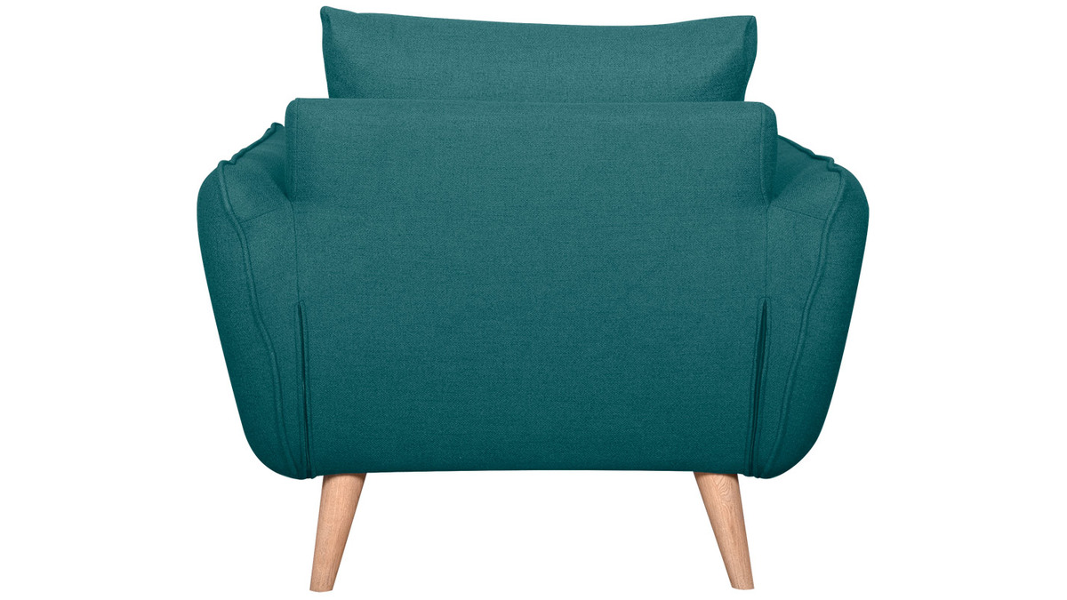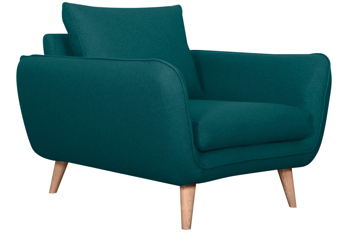Ce fauteuil 100% made in France se distingue notamment par son assise ample et profonde (L60 x P60 cm). Celle-ci est garnie d'une mousse dense (28 kg/m3) et habillée d'un joli tissu bleu paon (100% polyester) à la fois souple et doux au toucher. Le moelleux de ses coussins et ses larges accoudoirs participent aussi au confort. Ils forment une enveloppe protectrice propice à la relaxation...