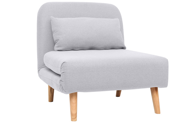 En un clin d'oeil, cette chauffeuse 1 place se transforme en fauteuil relax ou en couchage d'appoint pour une personne (5 positions d'inclinaisons en tout). Le fauteuil mesure 200 cm de long en position lit, idéal donc pour les plus grands. Grâce à sa position relax, il sera un allié de taille lors de vos soirées cocooning et trouvera facilement sa place dans votre salon ou dans une chambre d'amis. Sa jolie couleur grise passe-partout et son look scandinave s'harmoniseront sans difficulté avec une très riche palette de couleurs.