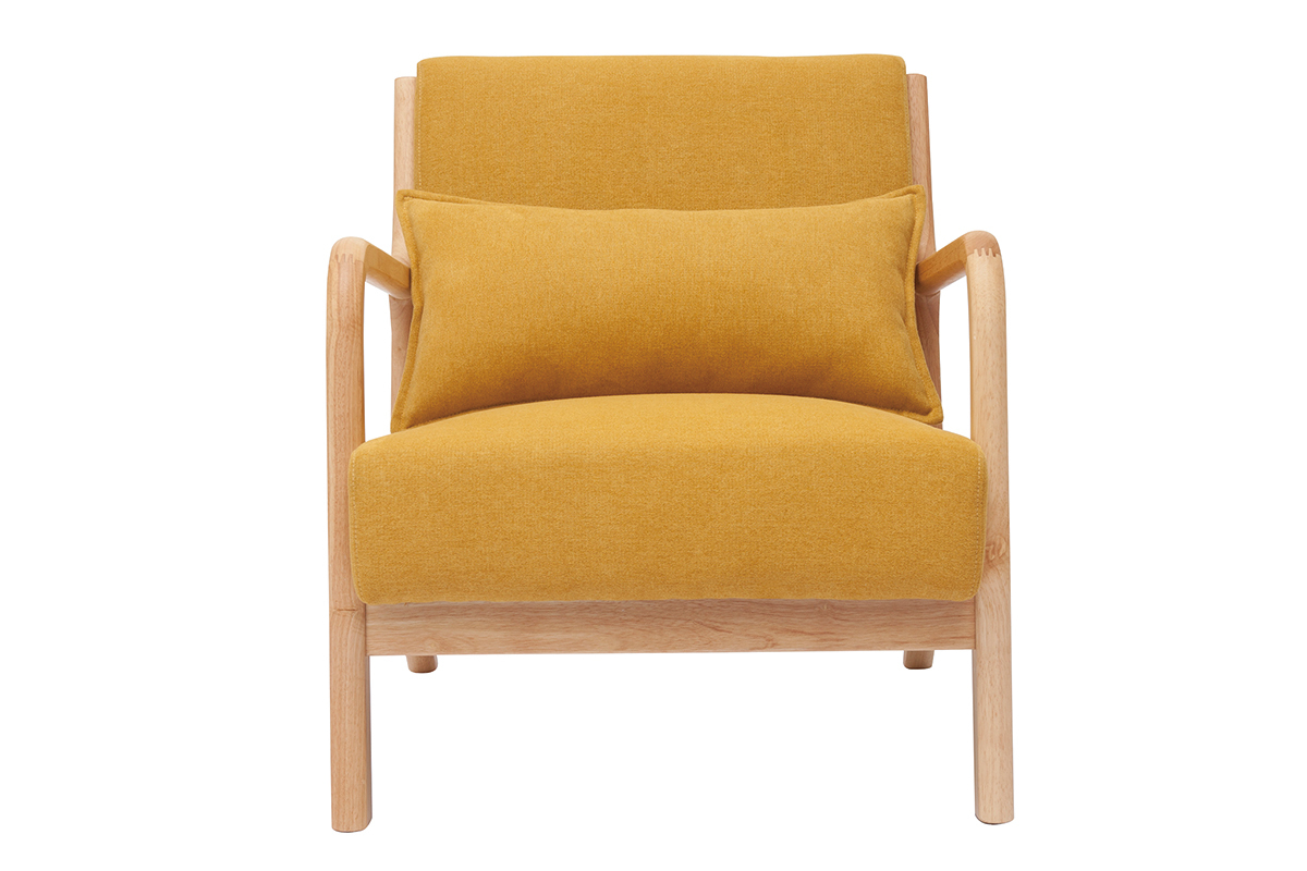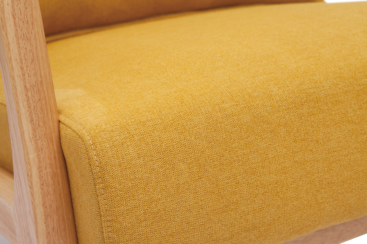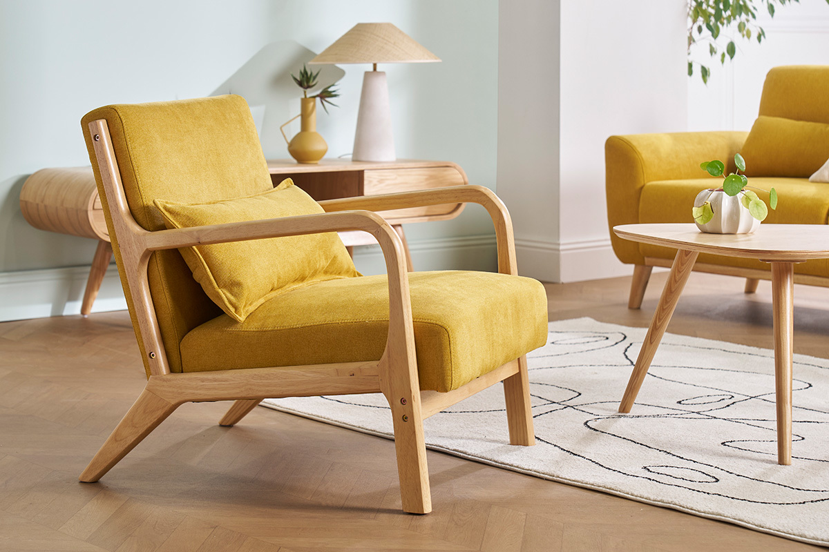 Fauteuil jaune moutarde et bois livré prêt à monter.