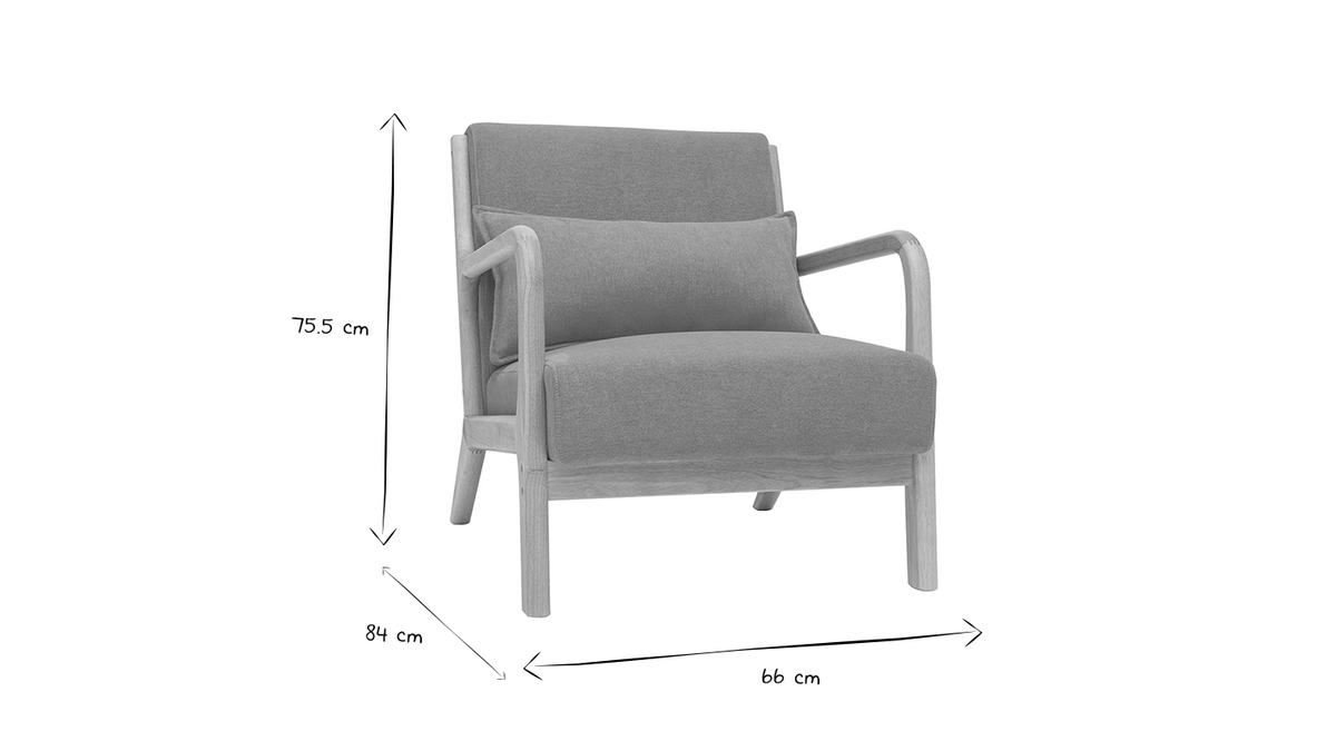 Parce qu'un fauteuil scandinave doit rimer avec confort, le cadre robuste en hévéa massif contraste tout en douceur avec le siège profond et le haut dossier. Rembourrée d'une agréable mousse densité 28 kg/m³, l'assise gagne en volume lorsqu'elle est complétée par son coussin d'appoint assorti. Sans fausse note, le piètement arrière légèrement incliné vous promet de doux moments relaxants confortablement installé.