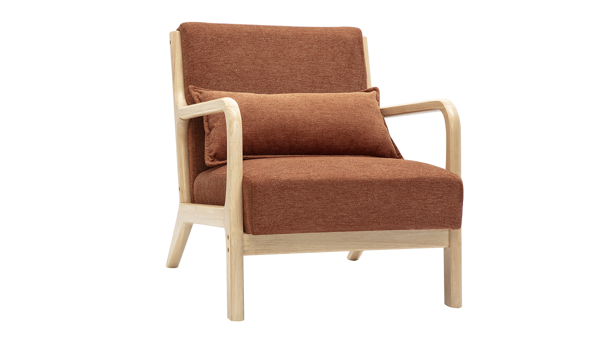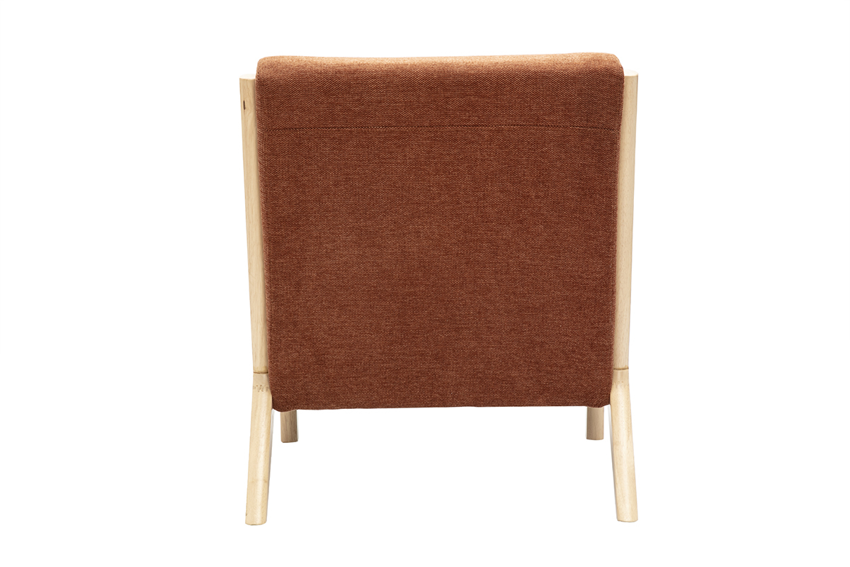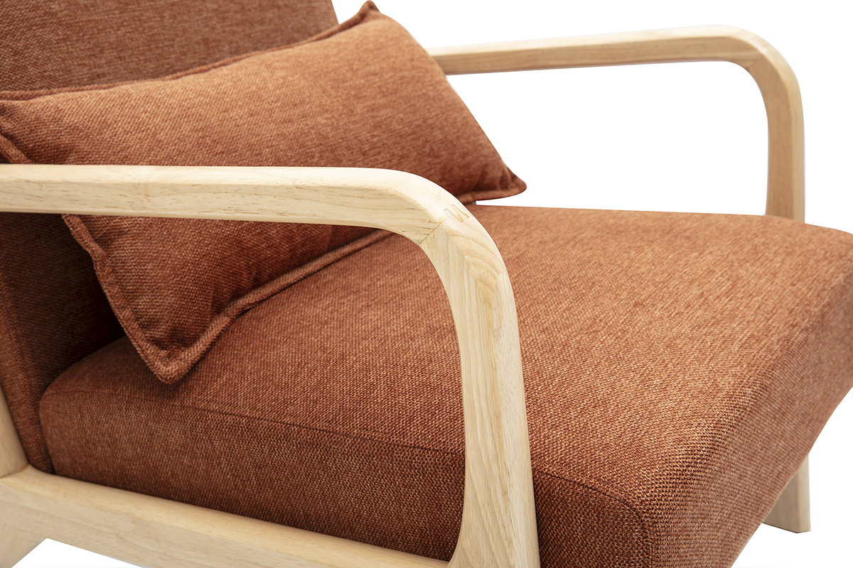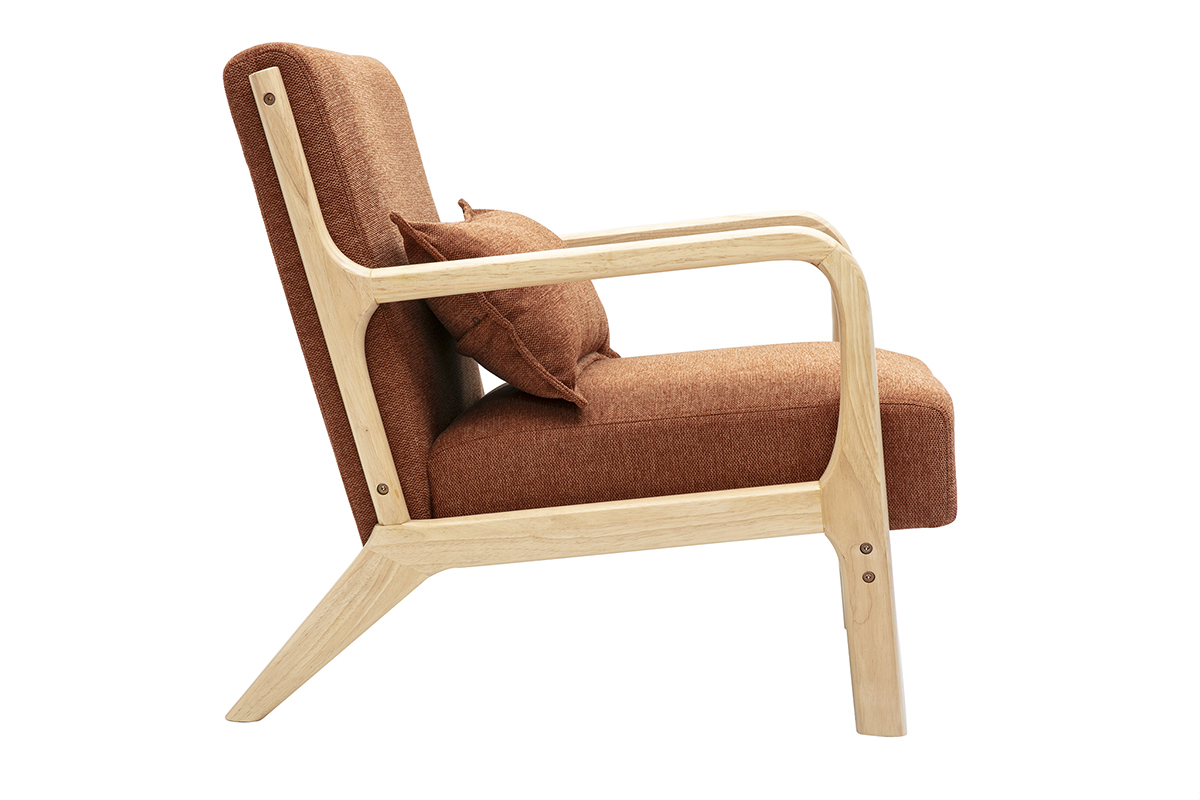 Fauteuil terre brûlée et bois livré prêt à monter.