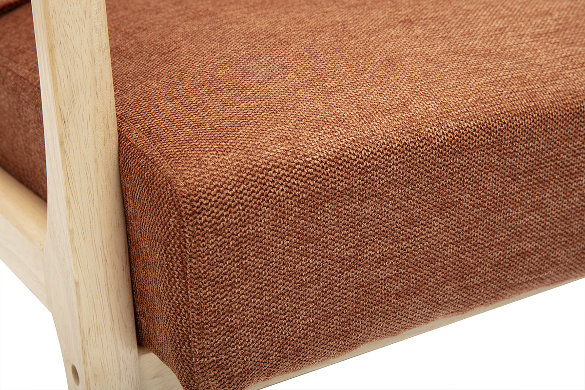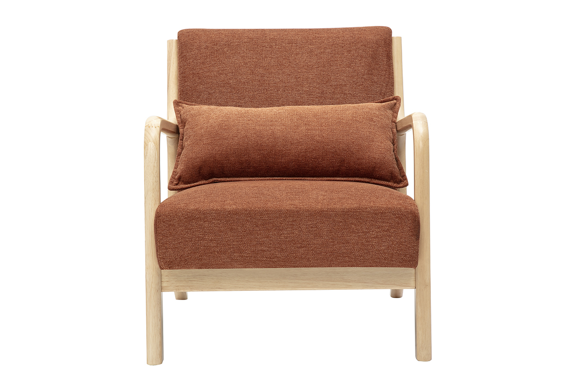 Aux angles polis et aux lignes organiques, la structure à l'inspiration vintage accueille un siège aux volumes épurés habillé d'un tissu effet velours couleur terre brûlée (90% polyester et 10% nylon). Cette nuance terreuse, inspirée de la couleur de l'argile - non sans rappeler son homologue terracotta - associe à merveille sa couleur brun-rouge à la structure en bois clair. D'une élégante simplicité, la silhouette authentique et délicate du fauteuil DERRY trouvera indéniablement sa place dans une chambre ou un salon à la déco scandinave.