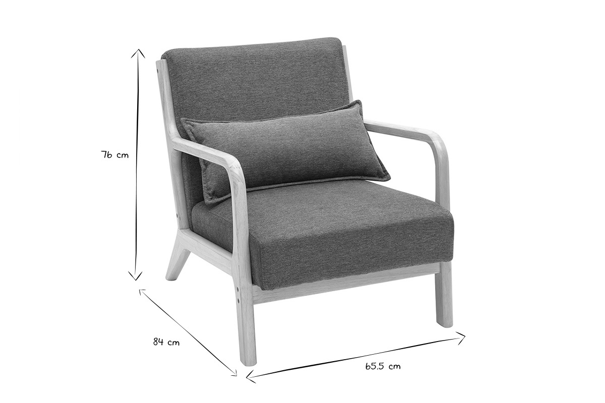 Parce qu'un fauteuil scandinave doit rimer avec confort, le cadre robuste en hévéa massif contraste tout en douceur avec le siège profond et le haut dossier. Rembourrée d'une agréable mousse densité 28 kg/m³, l'assise gagne en volume lorsqu'elle est complétée par son coussin d'appoint assorti. Sans fausse note, le piètement arrière légèrement incliné vous promet de doux moments relaxants confortablement installé.