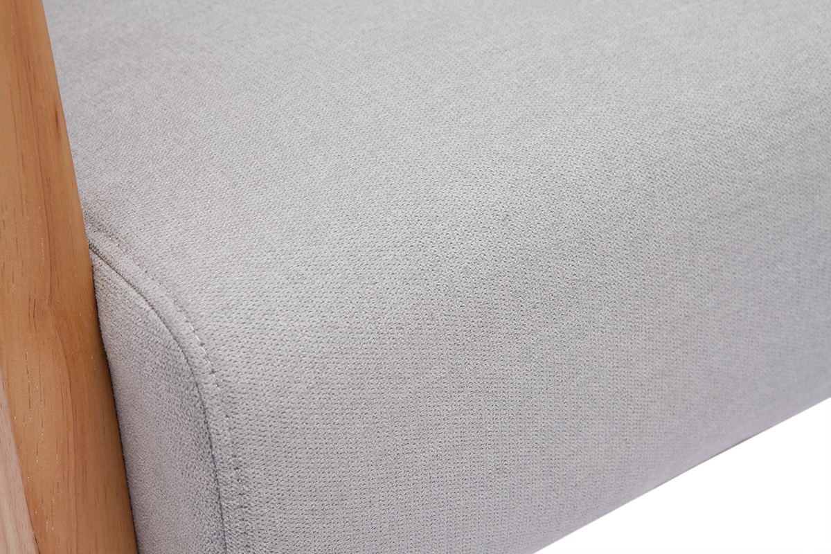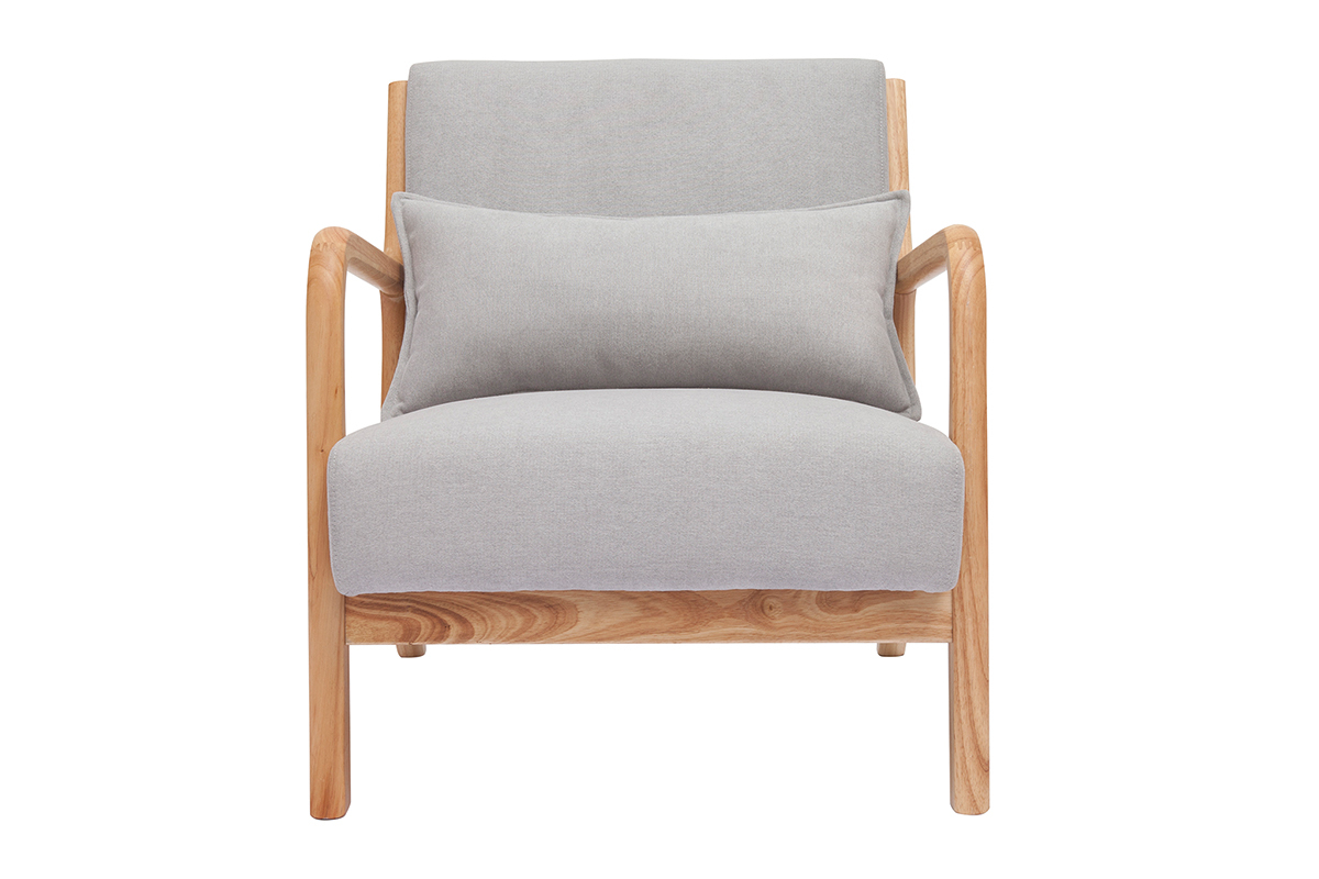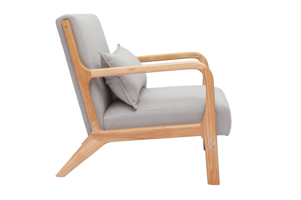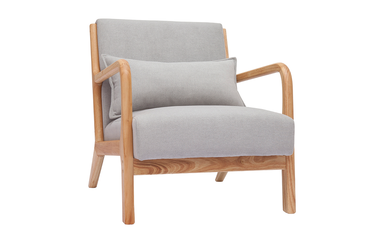Aux angles polis et aux lignes organiques, la structure à l'inspiration vintage accueille un siège aux volumes épurés habillé d'un tissu effet velours gris clair. Sobre et intemporelle, cette couleur se marie au bois clair avec douceur. Mêlant élégance et simplicité, la silhouette authentique et chaleureuse du fauteuil DERRY trouvera indéniablement sa place dans une chambre ou un salon à la déco scandinave.