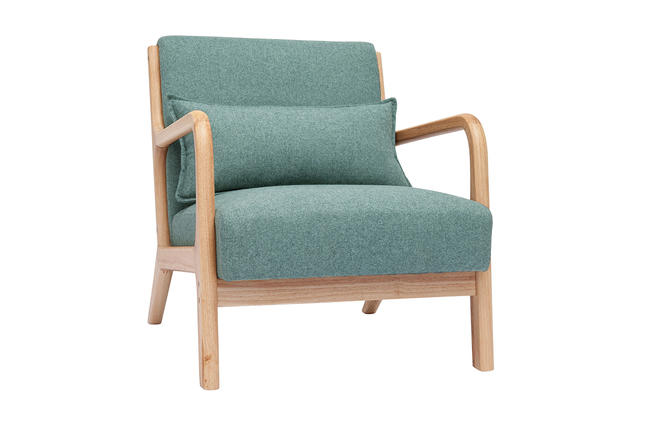 Parce qu'un fauteuil scandinave doit rimer avec confort, le cadre robuste en hévéa massif contraste tout en douceur avec le siège profond et le haut dossier. Rembourrée d'une agréable mousse densité 28 kg/m³, l'assise gagne en volume lorsqu'elle est complétée par son coussin d'appoint assorti. Sans fausse note, le piètement arrière légèrement incliné vous promet de doux moments relaxants confortablement installé.