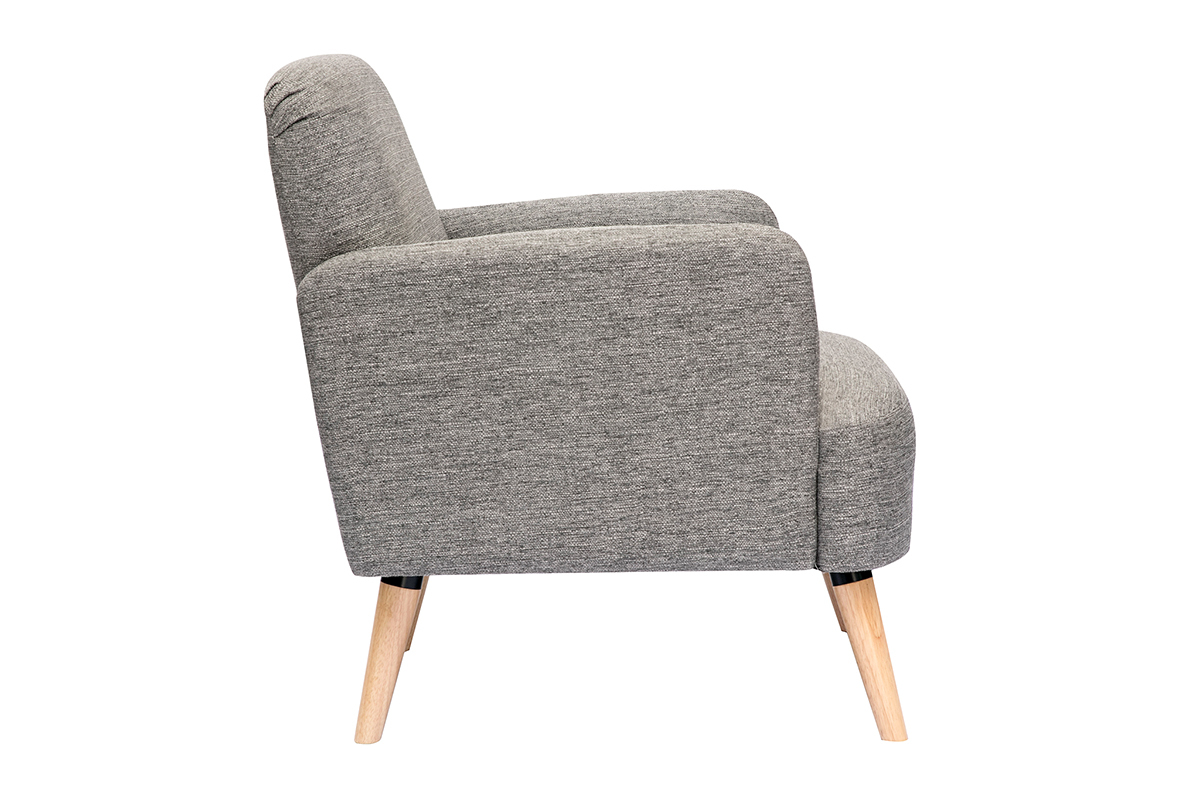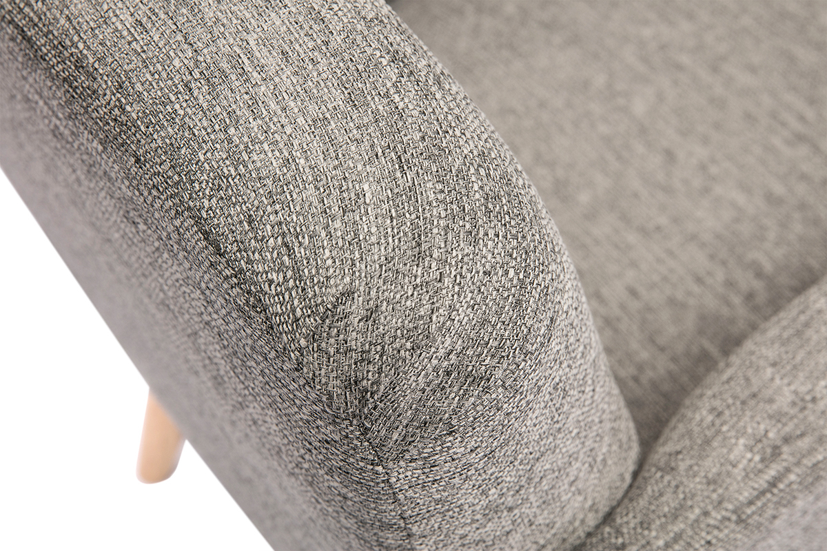 Avec ses lignes arrondies, son design épuré et sa jolie combinaison de matières, ce fauteuil possède tout ce qui fait le charme des meubles scandinaves. Le piètement en hévéa massif et le tissu 100% polyester coloris gris clair de l'assise en font une pièce indémodable et facile à intégrer dans différents styles de séjour.