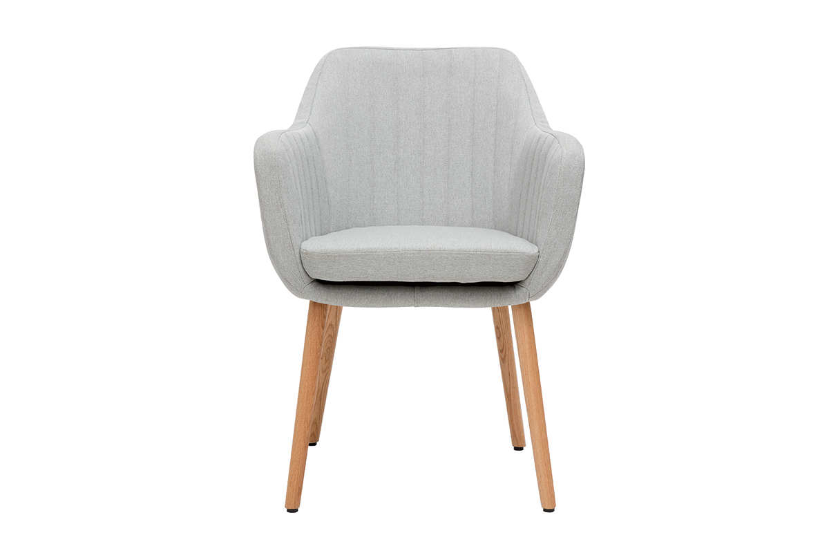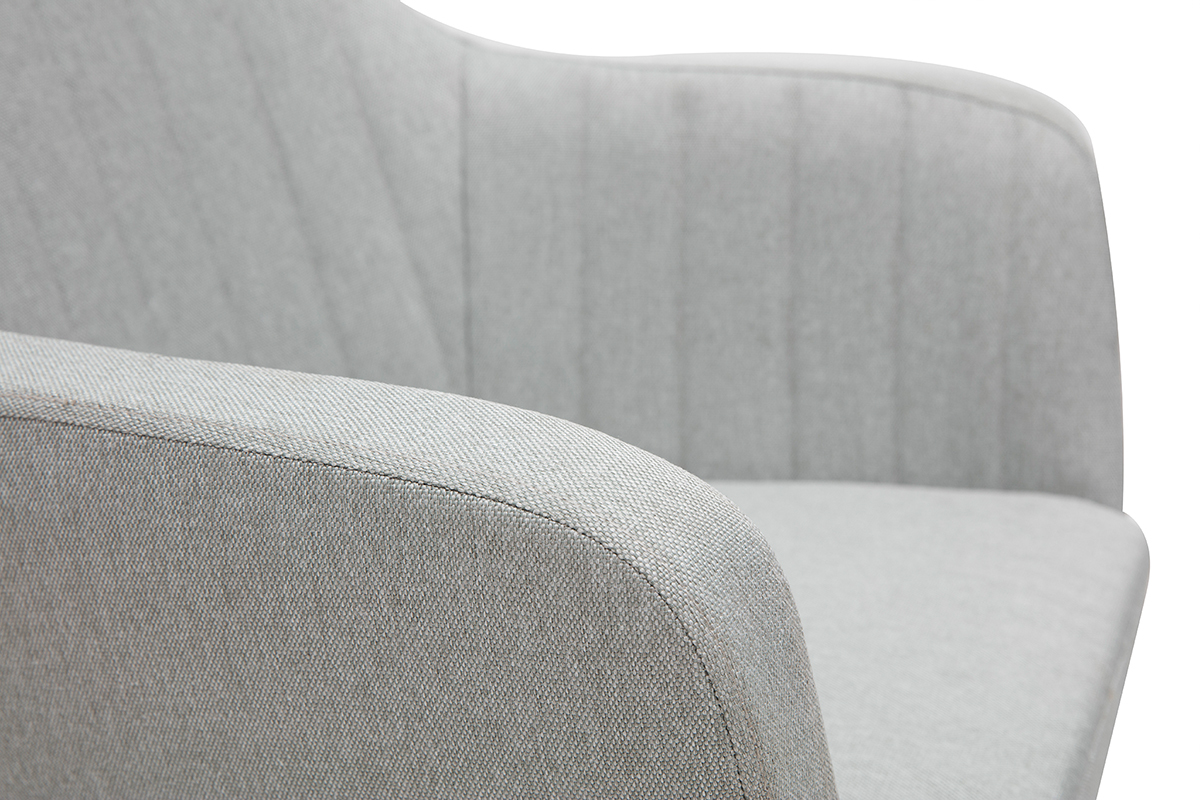 Cette chaise scandinave possède un look inspiré des pays nordiques. Avec son revêtement en tissu au toucher très agréable (100% polyester) et son piètement en chêne massif, ce fauteuil gris et bois clair offre un design ultra moderne et tendance.