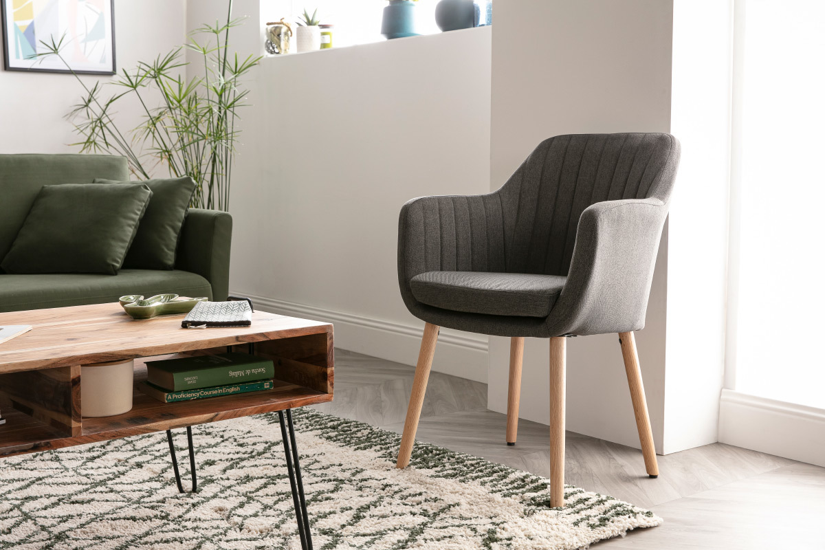 Cette chaise scandinave possède un look inspiré des pays nordiques. Avec son revêtement en polyester et son piètement en bois de chêne, ce fauteuil offre un design ultra moderne et tendance.