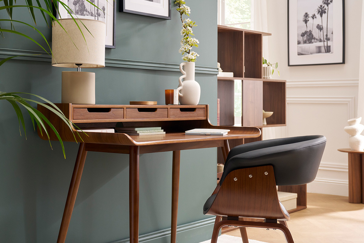 Matières : contrepaqué noyer, pieds en hêtre massif