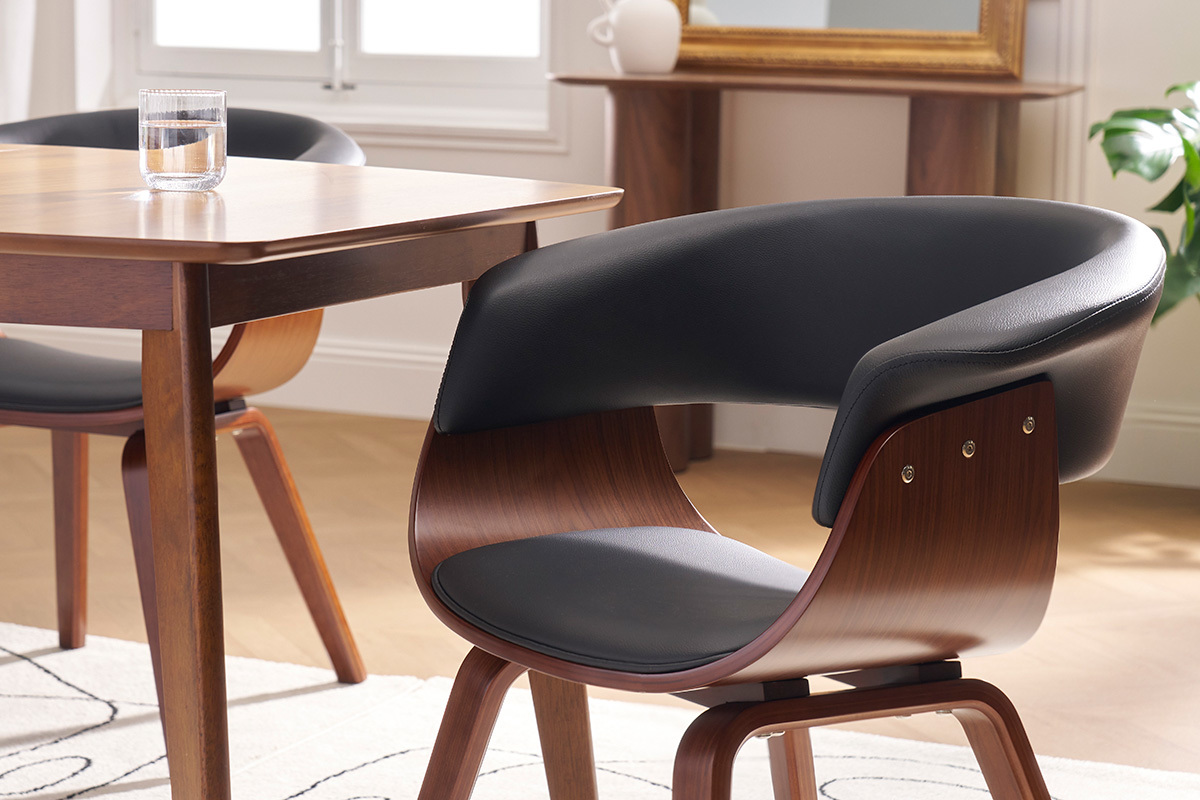 Inspiré du style scandinave, il se distingue par son assise tout en courbes et son aspect bimatière. L'utilisation du bois courbé offre un rendu unique tout en douceur et en délicatesse. Piètement et assise laissent apparaître les nervures du bois pour un rendu authentique. Le polyuréthane apporte la petite touche chic qui constraste à merveille avec le bois. Typique du style scandinave des années 70, ce fauteuil est aussi confortable qu'élégant. Ses lignes épurées et ses tons neutres permettent au fauteuil OKTAV de s'intégrer facilement dans différents styles déco.
