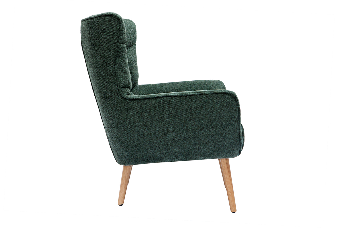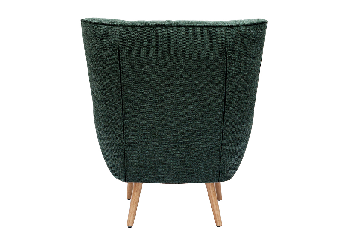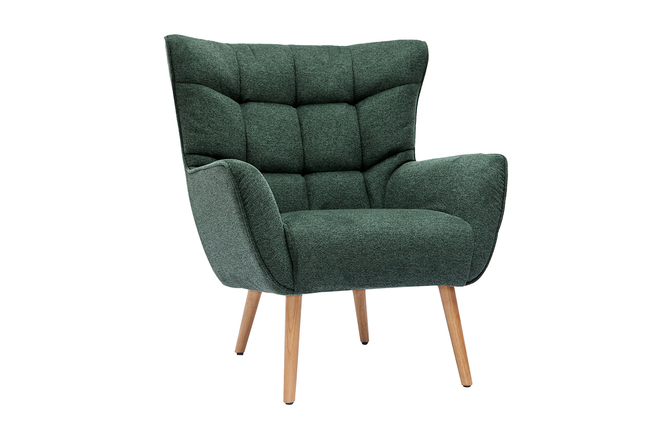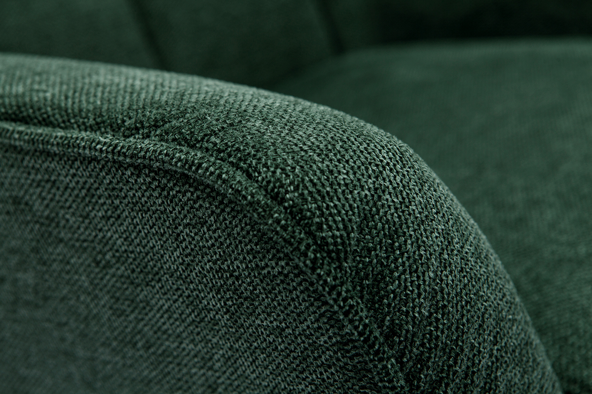 Le fauteuil AVERY semble vous inviter à la détente. C'est le dossier capitonné et le rembourrage de l'assise qui donnent cet effet unique. Ils ont été associés à une forme évasée et des dimensions généreuses pour un maximum de confort. Ce fauteuil réunit également des grands accoudoirs et un dossier haut, le parfait combo pour tous ceux qui aiment se lover dans leur fauteuil de salon. Le piètement en hévéa et le revêtement apportent une touche chaleureuse à l'ensemble. On aime particulièrement le tissu de ce modèle AVERY : son aspect effet velours texturé et son coloris vert foncé en font un siège unique.