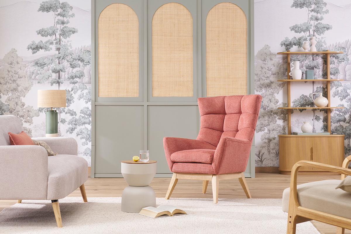 Pour une ambiance « hygge » chaleureuse, on peut associer le fauteuil BRODY à un épais tapis de syle berbère. Ajoutez un plaid, une tasse de thé chaude et un bon bouquin...et paressez chic !