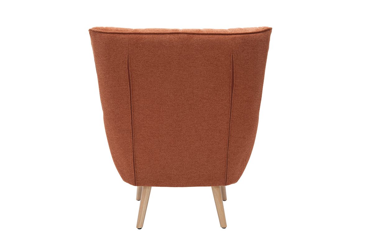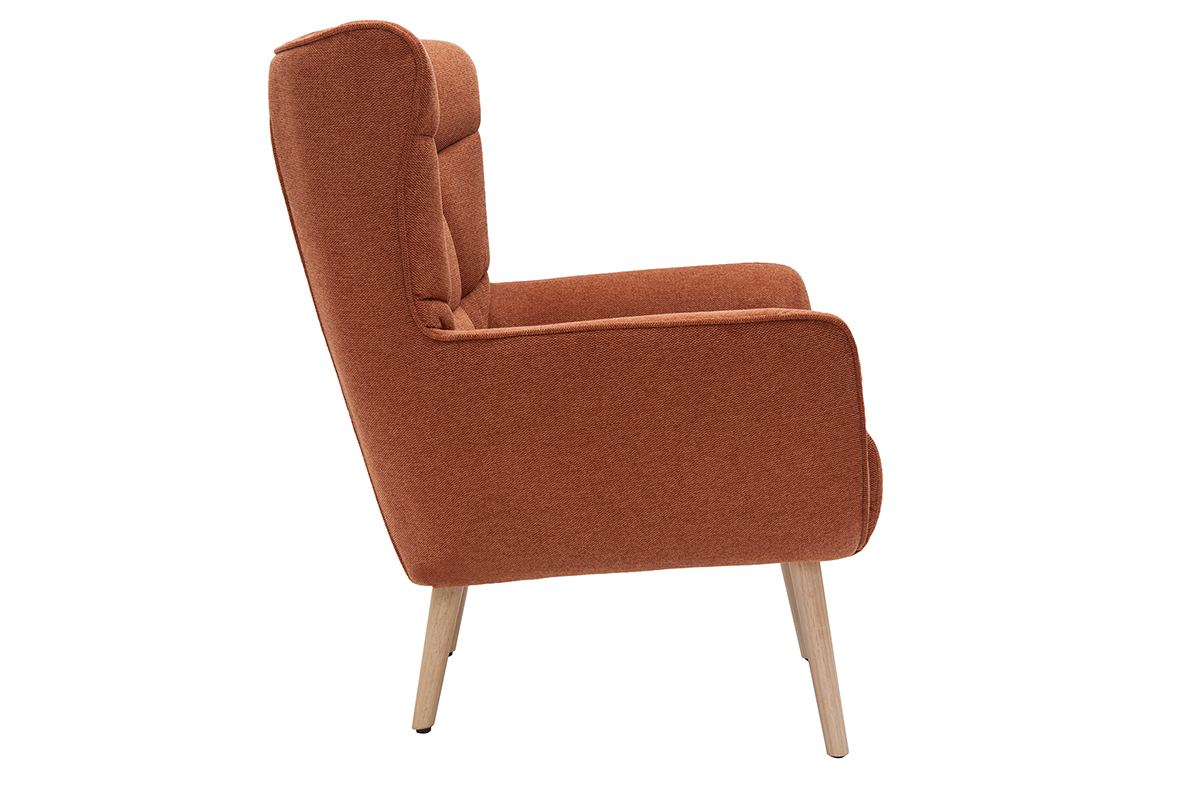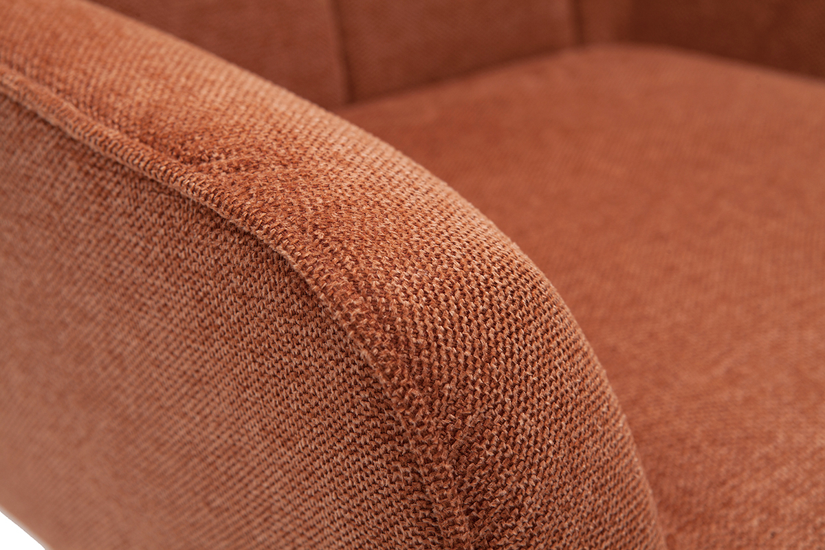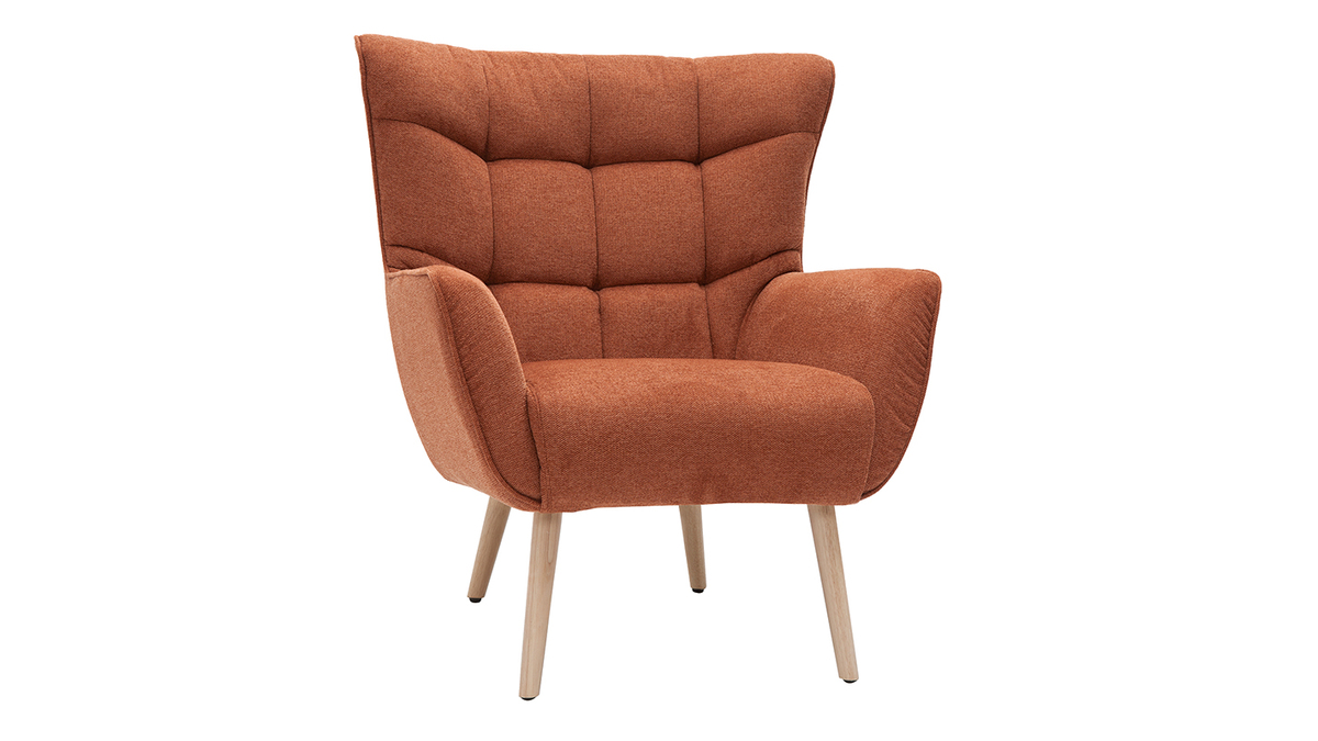 Le fauteuil AVERY semble vous inviter à la détente. C'est le dossier capitonné et le rembourrage de l'assise qui donnent cet effet unique. Ils ont été associés à une forme évasée et des dimensions généreuses pour un maximum de confort. Ce fauteuil réunit également des grands accoudoirs et un dossier haut, le parfait combo pour tous ceux qui aiment se lover dans leur fauteuil de salon. Le piètement en hévéa et le revêtement apportent une touche chaleureuse à l'ensemble. On aime particulièrement le tissu de ce modèle AVERY : son aspect effet velours texturé et son coloris terre brûlée en font un siège unique.
