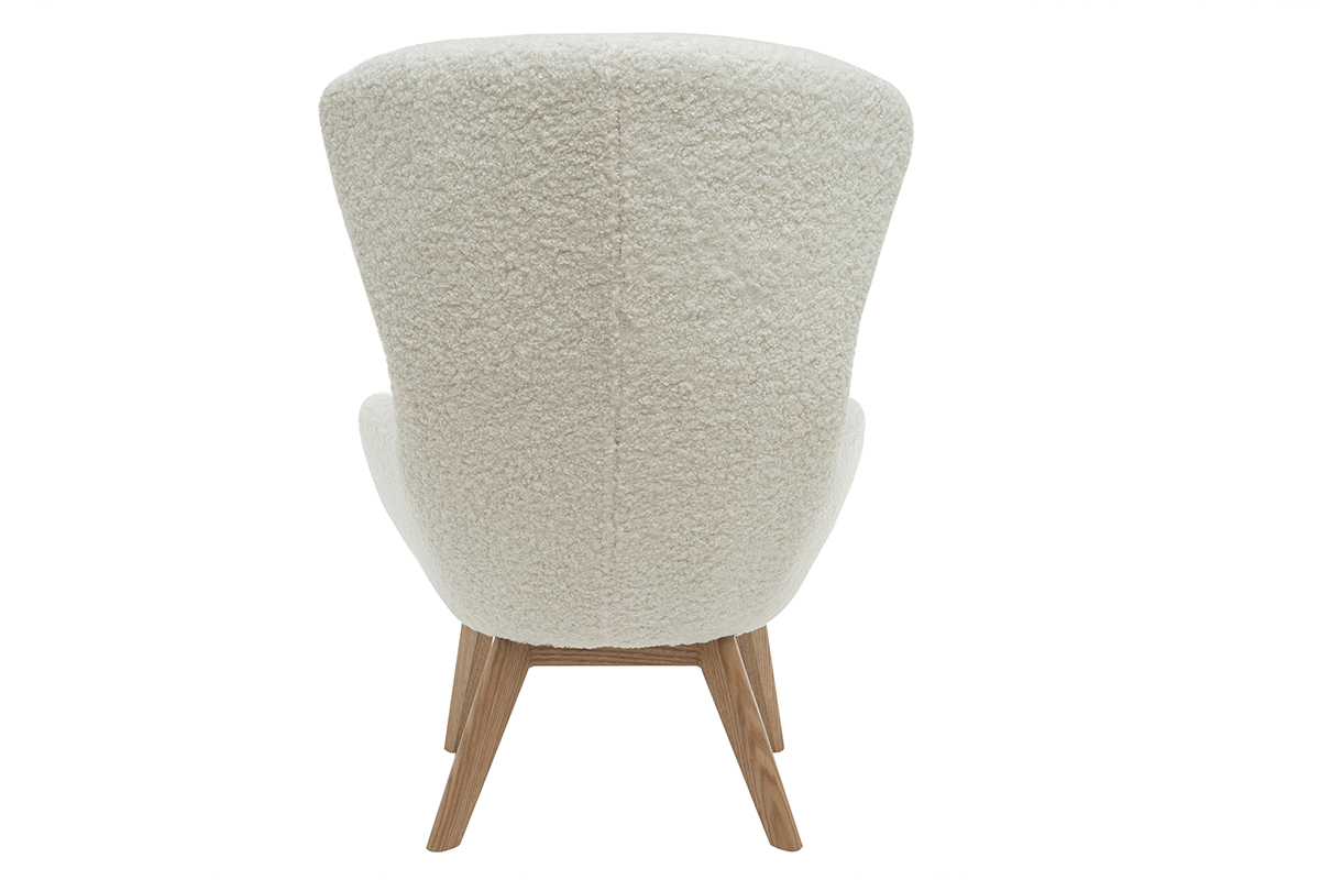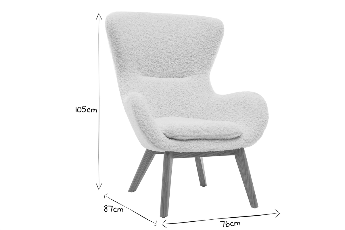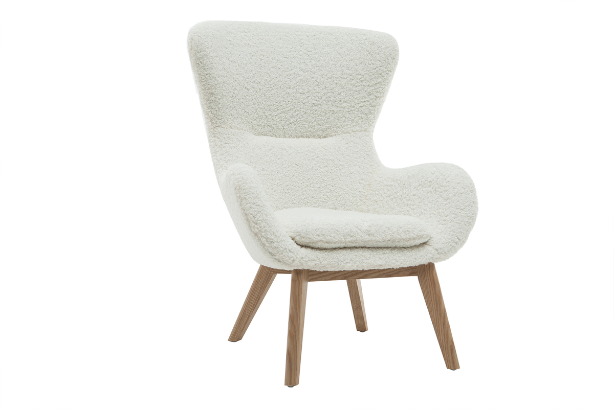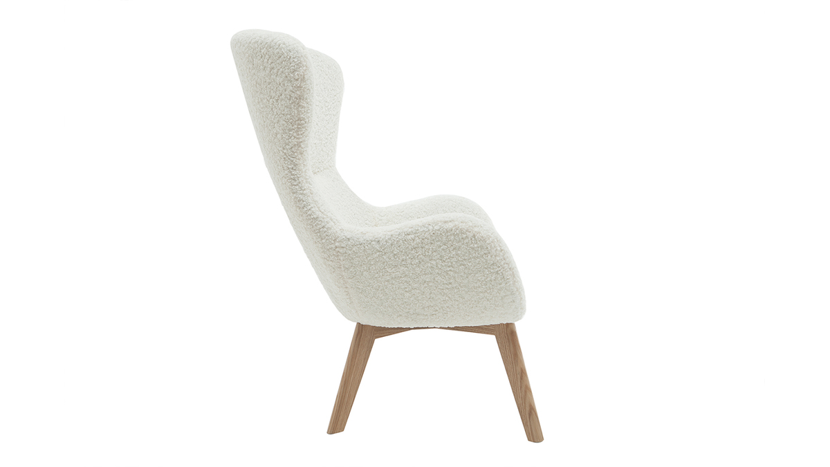 Fauteuil scandinave en tissu effet peau de mouton blanc et bois clair ESKUA