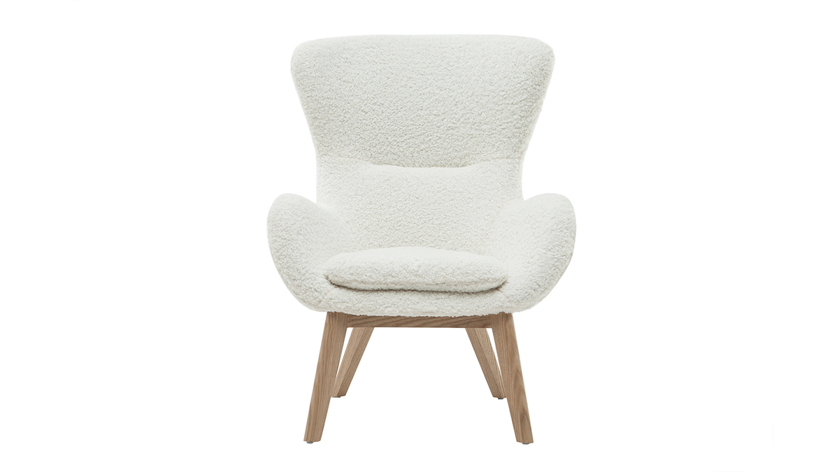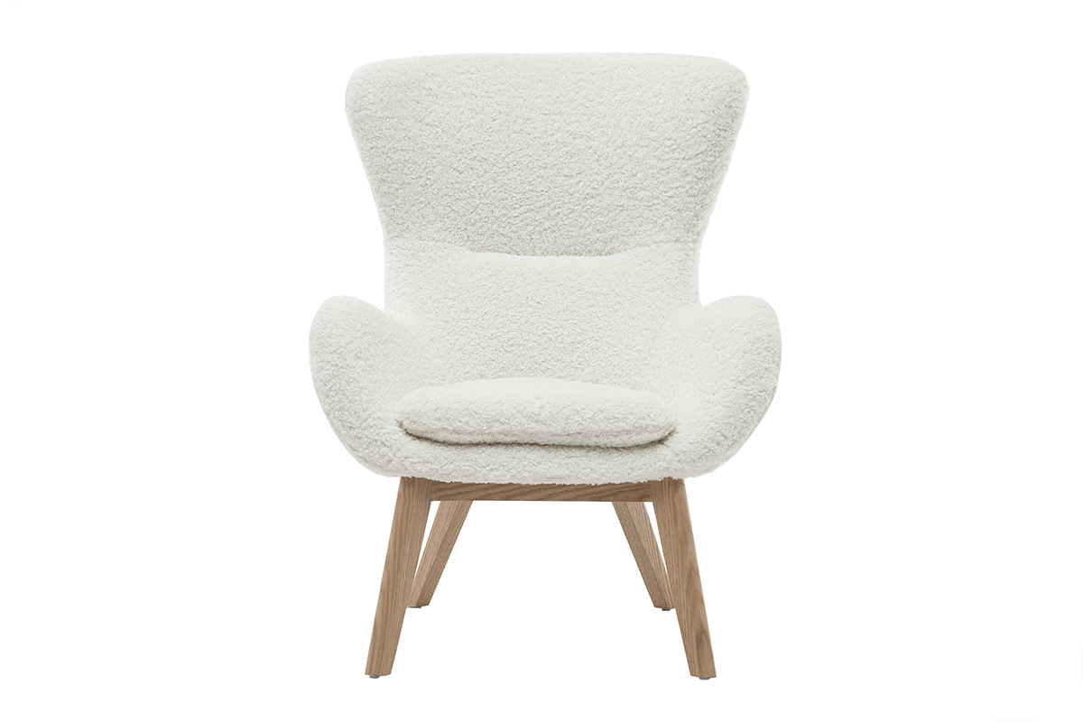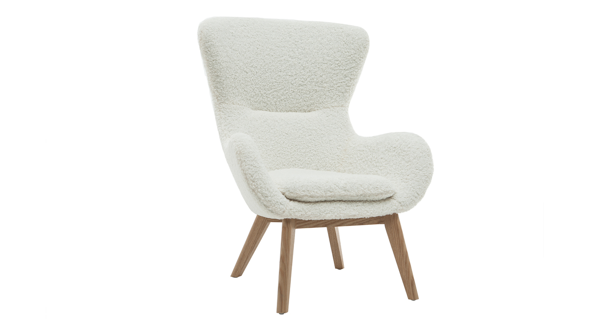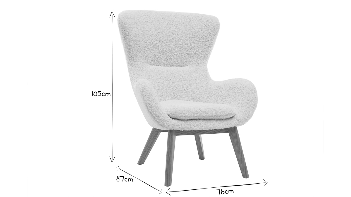 Fauteuil scandinave en tissu effet peau de mouton blanc et bois clair ESKUA