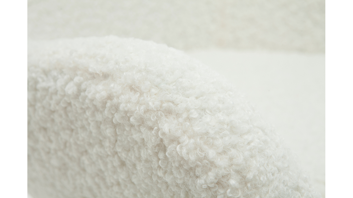 L'ensemble a été travaillé dans une forme tout en courbes et un tissu bouclette pour apporter un maximum de douceur. Le tissu effet peau de mouton est l'indispensable des intérieurs hygge. Chaleureux et tendance, il a tout bon pour aménager un séjour cosy. Le fauteuil blanc ESKUA l'associe à un piètement en bois massif, rappelant tout ce qui fait le charme des maisons scandinaves. Pour une ambiance 100% cocooning, on accompagne ce siège nordique d'une petite table basse en bois et d'un lampe assortie.