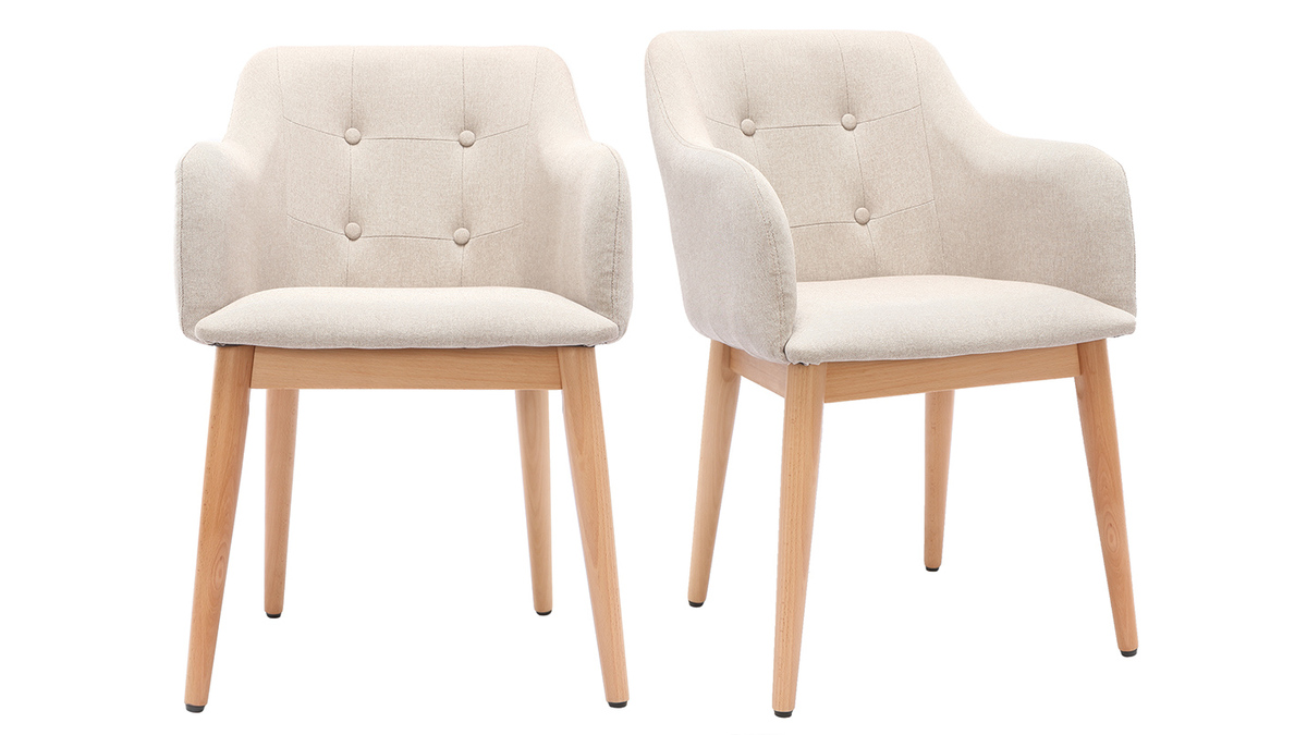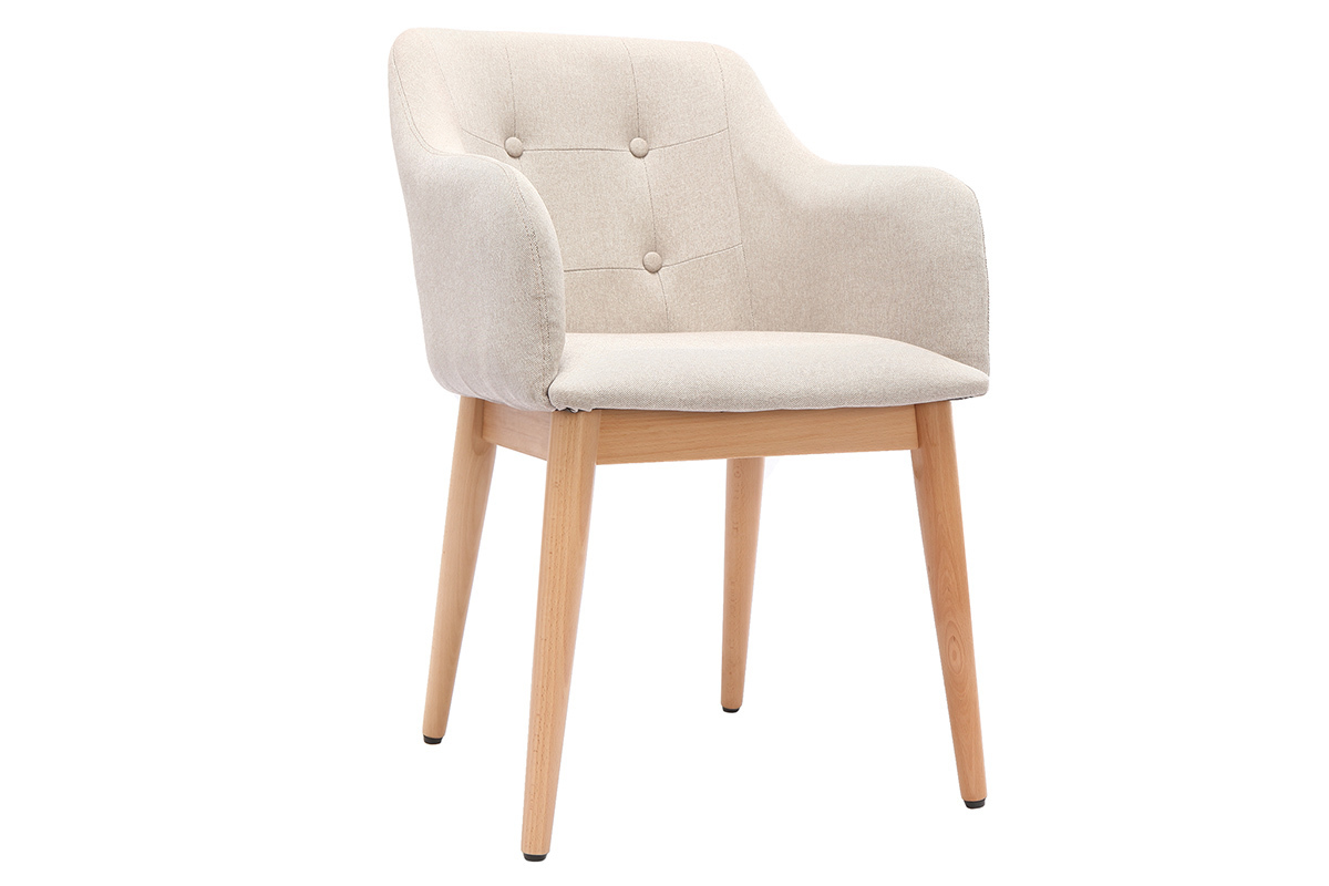 Son piètement en hêtre et ce revêtement en tissu clair donnent un ensemble harmonieux très imposant. Sans aucun doute il sera un véritable coup de coeur.