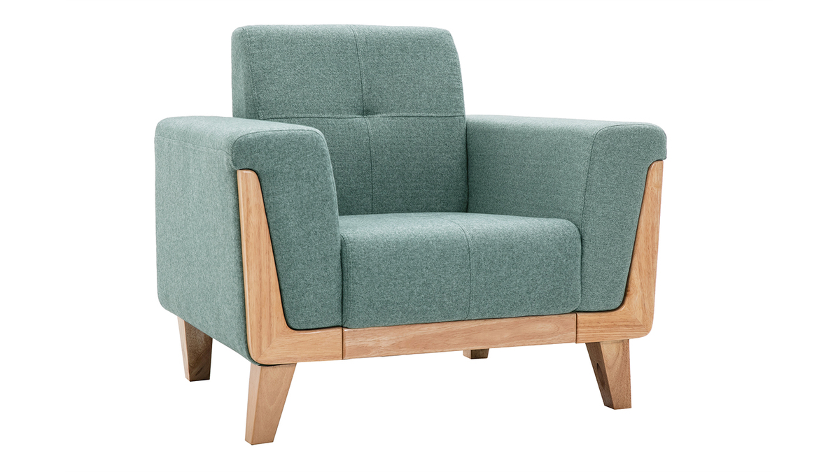 Ce petit fauteuil scandinave (L88 x P76 x H79 cm) complétera parfaitement l'ambiance du salon ! Pour un agencement harmonieux, accompagnez-le du canapé 2 places de la même collection !