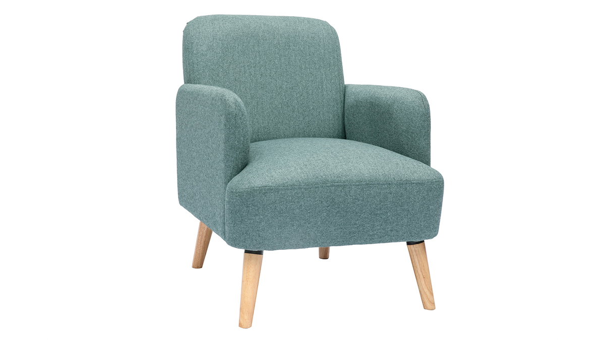 Avec ses lignes arrondies, son design épuré et sa jolie combinaison de matières, ce fauteuil possède tout ce qui fait le charme des meubles scandinaves. Le piètement en hévéa massif et le tissu 100% polyester coloris vert de gris de l'assise en font une pièce indémodable et facile à intégrer dans différents styles de séjour.
