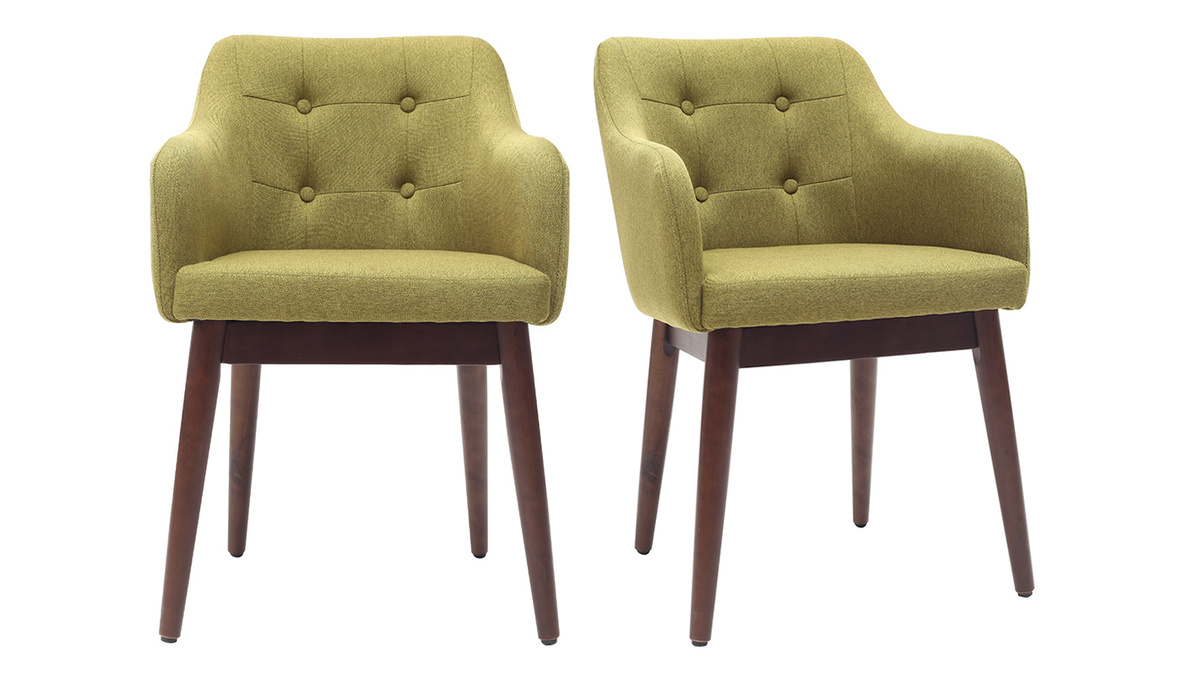 Son piètement en hêtre et ce revêtement en tissu vert donnent un ensemble harmonieux très imposant. Sans aucun doute il sera un véritable coup de coeur.