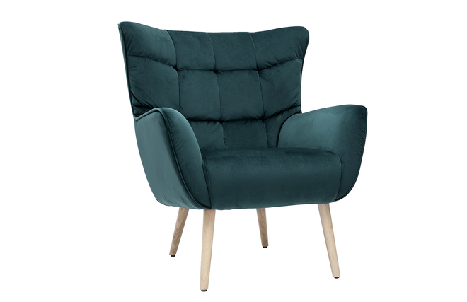 Le fauteuil AVERY semble vous inviter à la détente. C'est le dossier capitonné et le rembourrage de l'assise qui donnent cet effet unique. Ils ont été associés à une forme évasée et des dimensions généreuses pour un maximum de confort. Ce fauteuil réunit également grands accoudoirs et dossier haut, le parfait combo pour tous ceux qui aiment se lover dans leur fauteuil de salon. Le piètement en hévéa et le revêtement coloré apportent une touche chaleureuse à l'ensemble. On aime particulièrement le tissu de ce modèle AVERY : l'association du velours et de la teinte bleu pétrole, si tendance, en fait un siège unique.