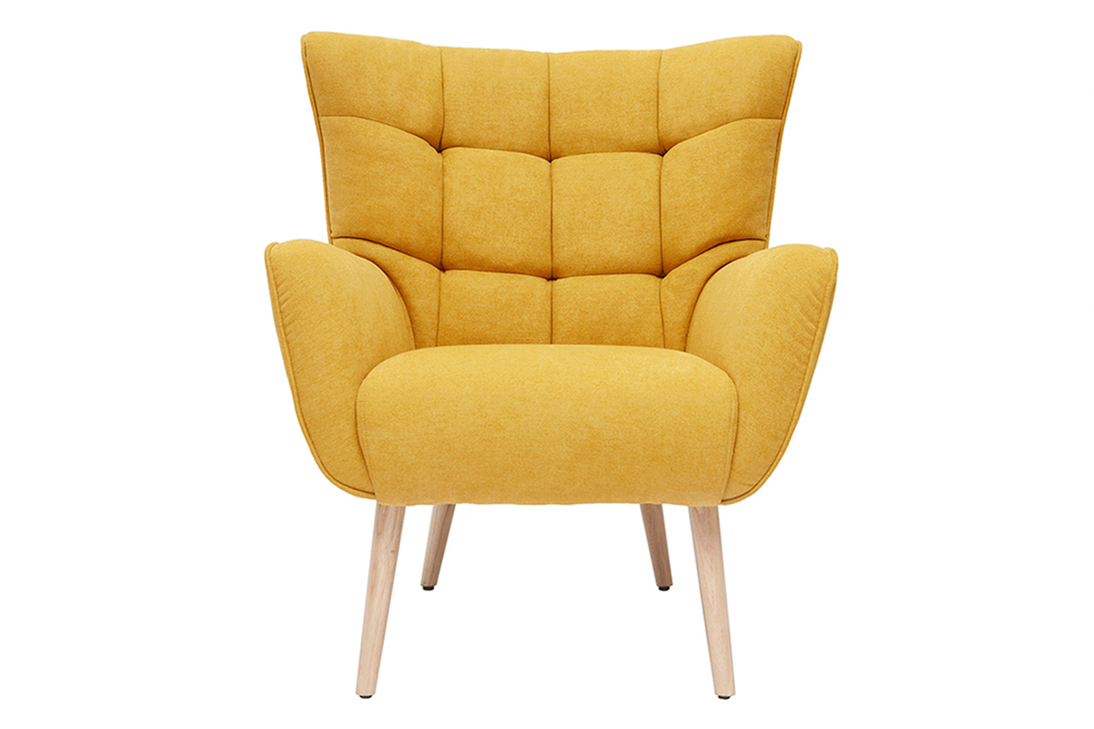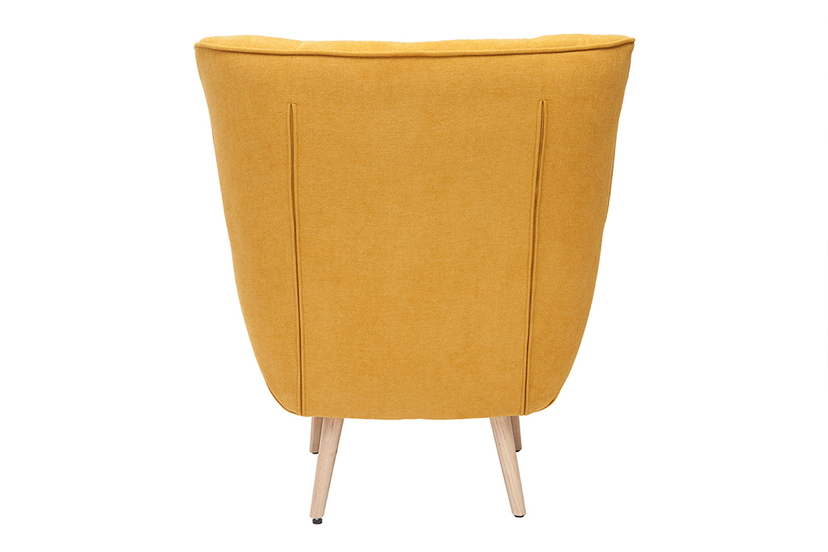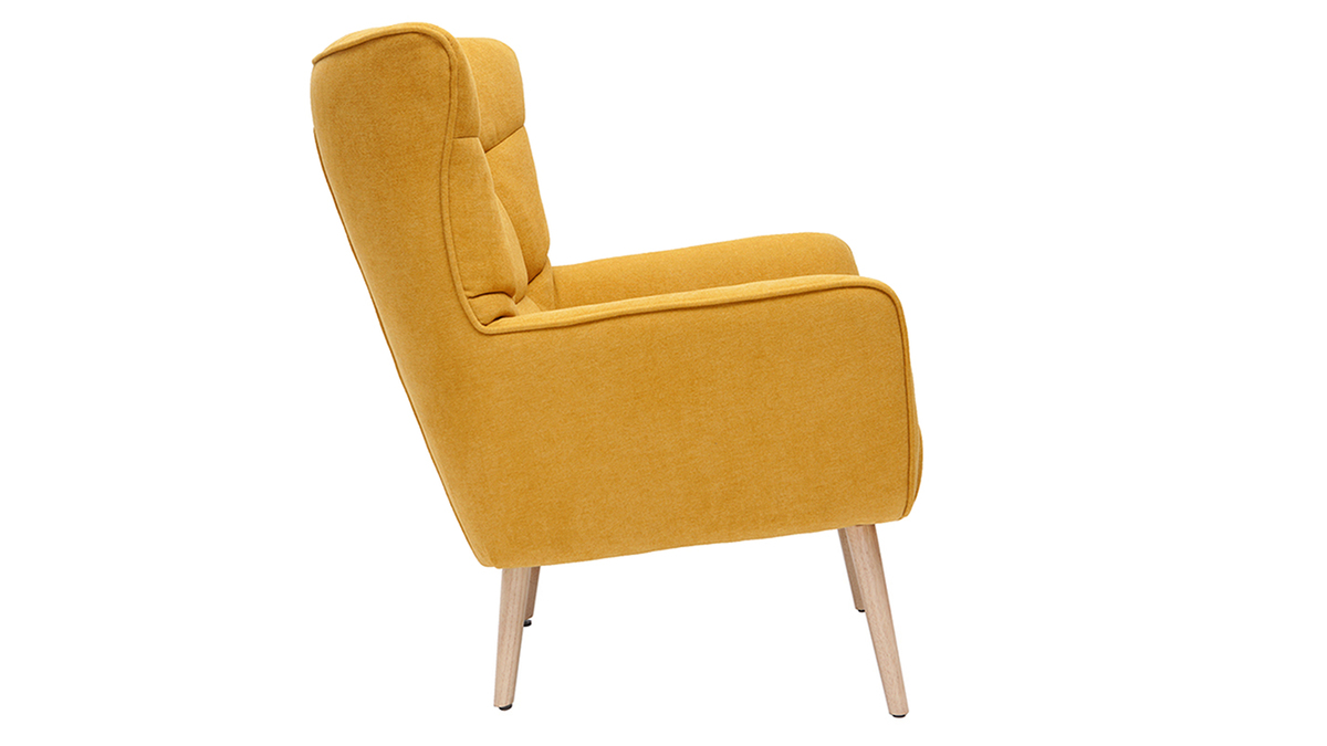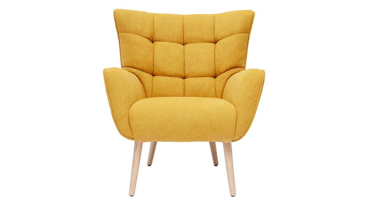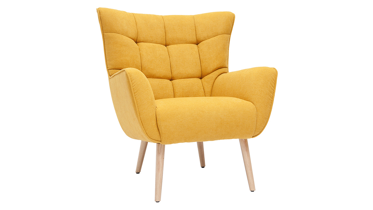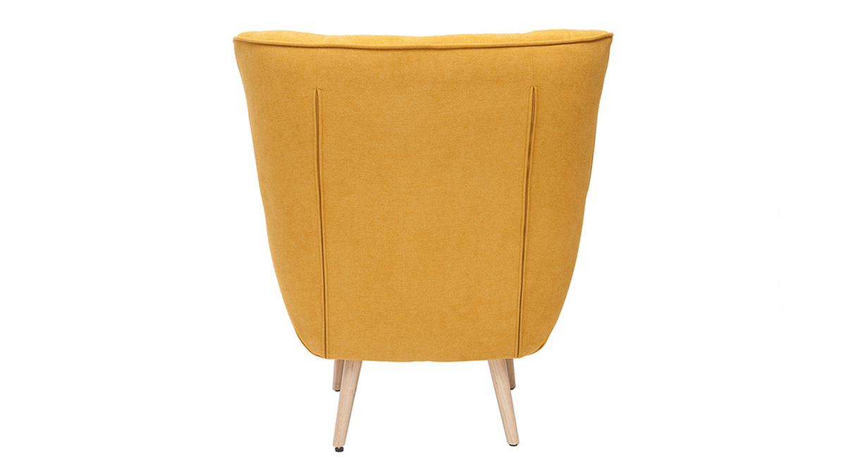 Le fauteuil AVERY semble vous inviter à la détente. C'est le dossier capitonné et le rembourrage de l'assise qui donnent cet effet unique. Ils ont été associés à une forme évasée et des dimensions généreuses pour un maximum de confort. Ce fauteuil réunit également grands accoudoirs et dossier haut, le parfait combo pour tous ceux qui aiment se lover dans leur fauteuil de salon. Le piètement en hévéa et le revêtement coloré apportent une touche chaleureuse à l'ensemble. On aime particulièrement le tissu de ce modèle AVERY : son aspect effet velours et son coloris moutarde en font un siège unique.