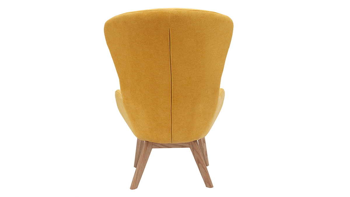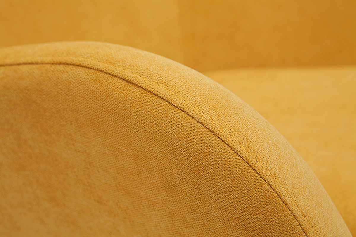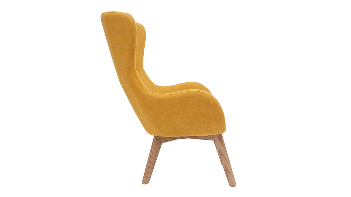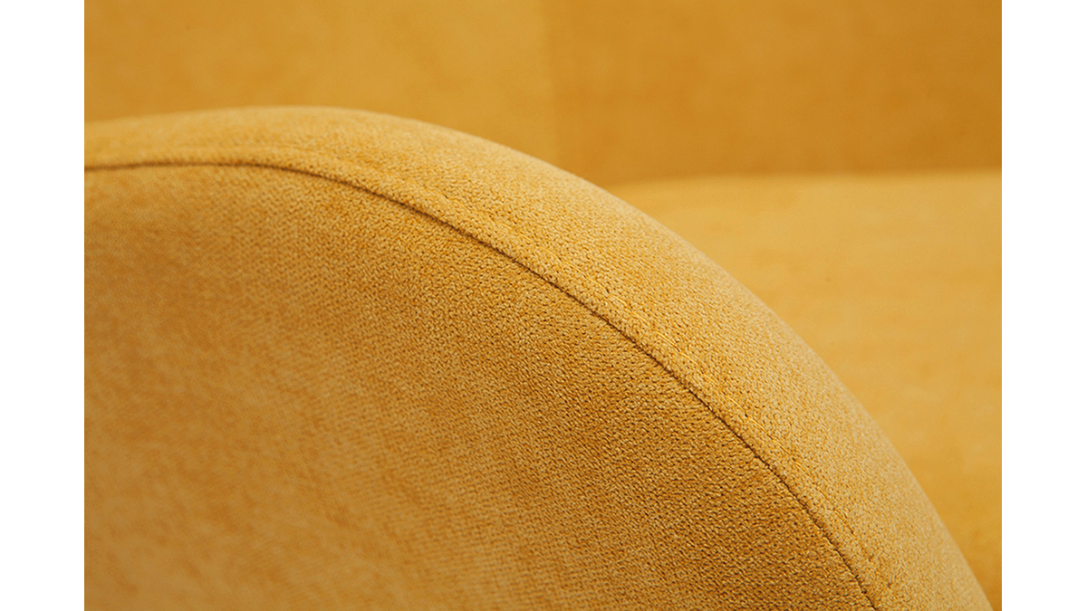 Parce qu'il réunit confort et douceur, ce fauteuil en tissu effet velours jaune est le compagnon parfait pour se détendre.