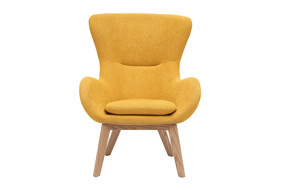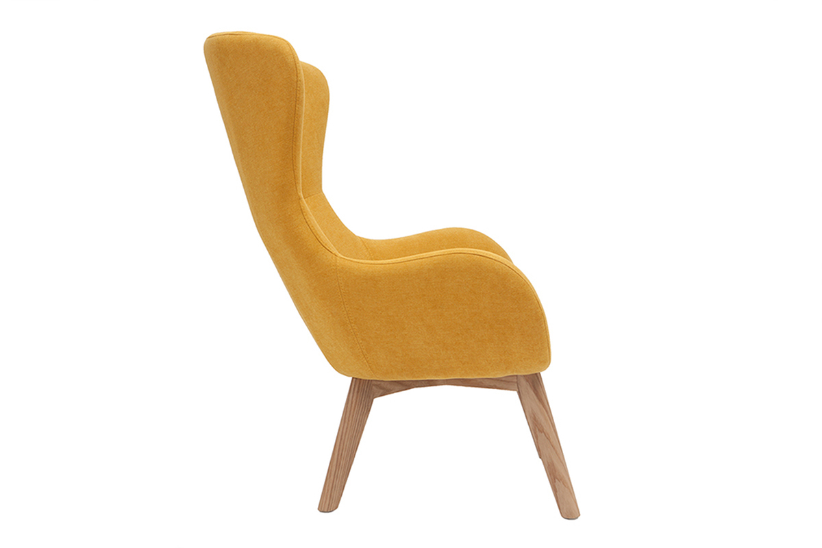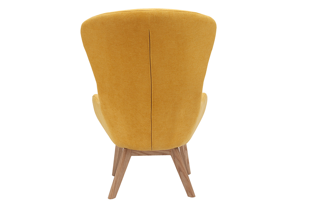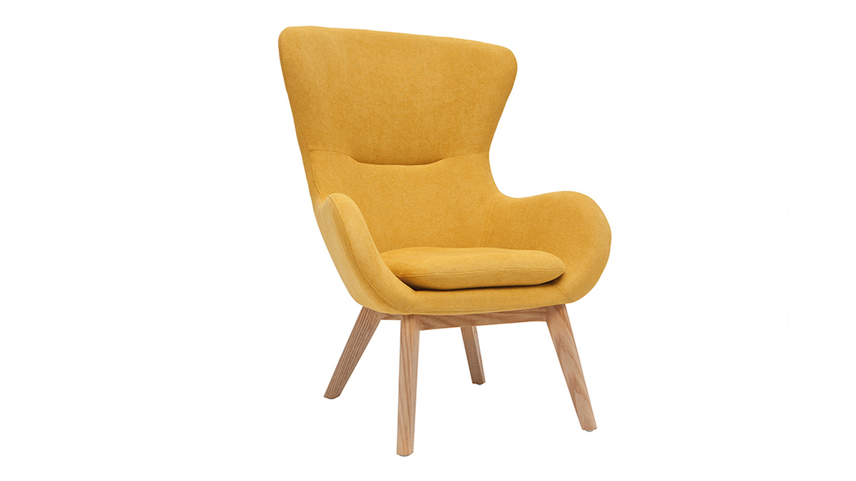 Parce qu'il réunit confort et douceur, ce fauteuil en tissu effet velours jaune est le compagnon parfait pour se détendre.