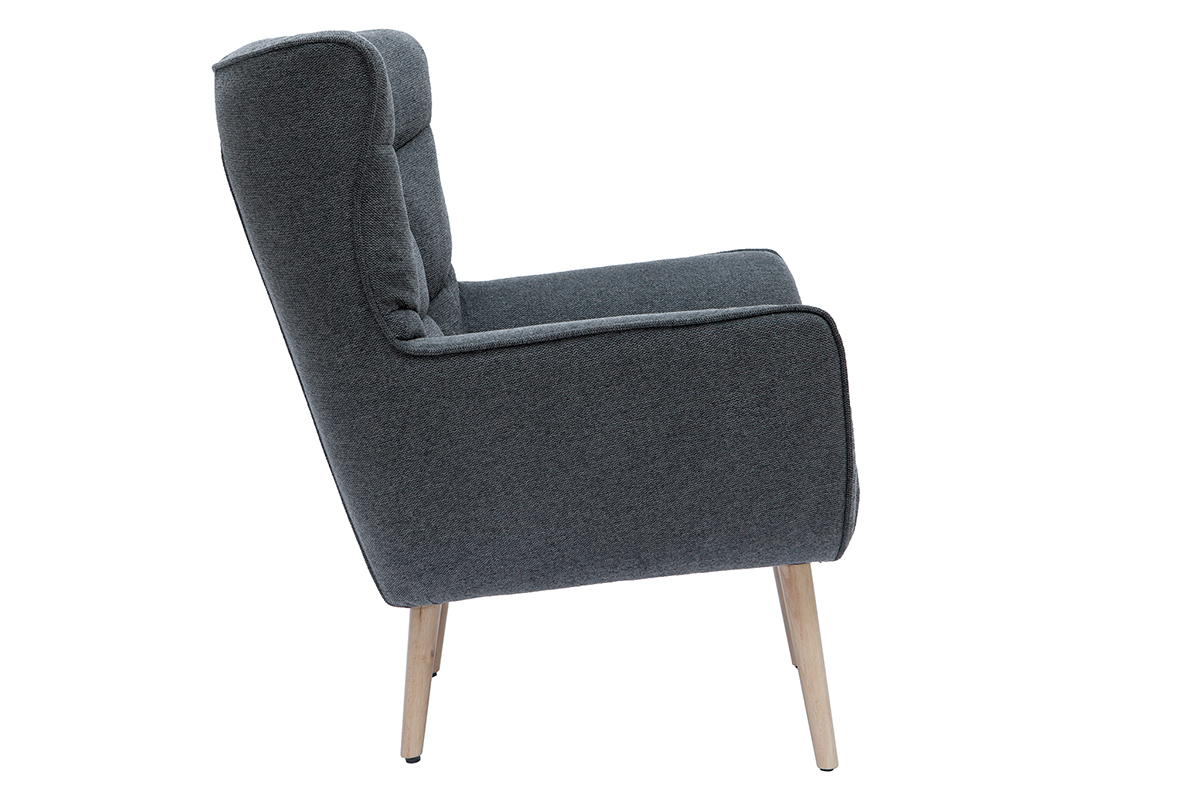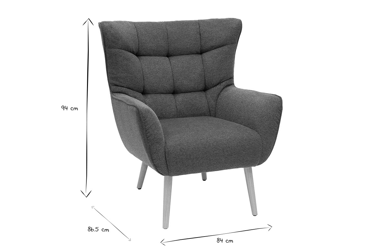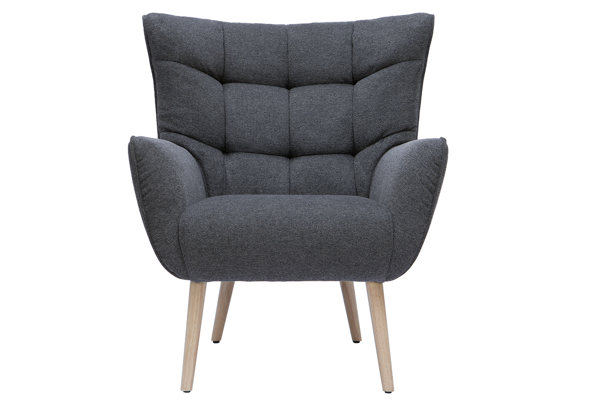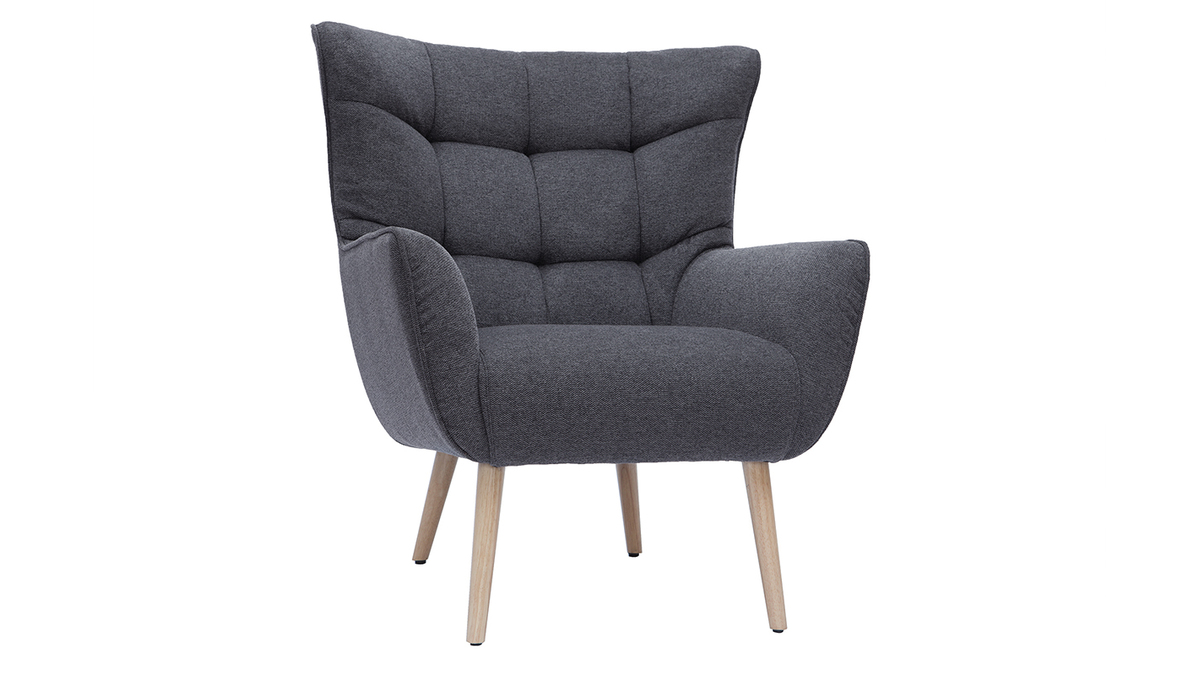 Le fauteuil AVERY semble vous inviter à la détente. C'est le dossier capitonné et le rembourrage de l'assise qui donnent cet effet unique. Ils ont été associés à une forme évasée et des dimensions généreuses pour un maximum de confort. Ce fauteuil réunit également des grands accoudoirs et un dossier haut, le parfait combo pour tous ceux qui aiment se lover dans leur fauteuil de salon. Le piètement en hévéa et le revêtement apportent une touche chaleureuse à l'ensemble. On aime particulièrement le tissu de ce modèle AVERY : son aspect effet velours texturé et son coloris gris foncé en font un siège unique.