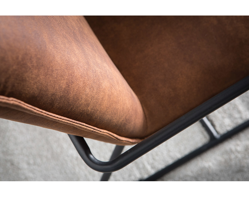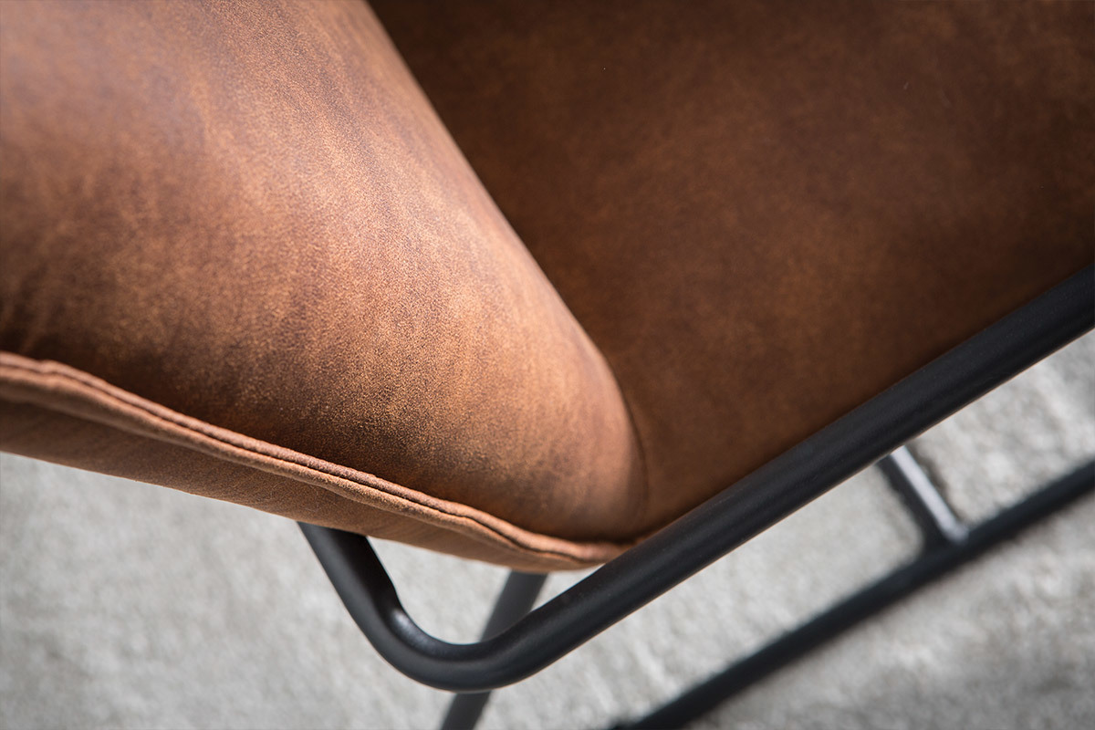 Un fauteuil qui sort de l'ordinaire avec beaucoup de style et de caractère c'est le fauteuil MERCY. Son style est un savoureux mélange entre l'industriel avec sa structure métallisée et son revêtement en simili cuir marron rappelle les fauteuils des années 60-70.