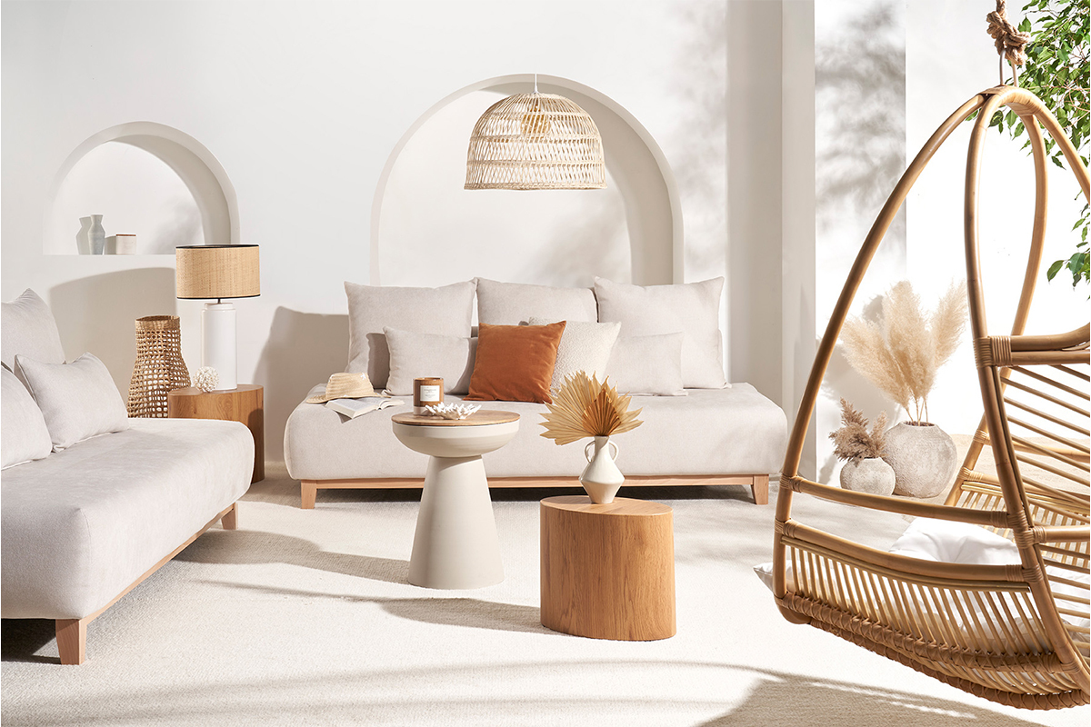 Le fauteuil suspendu GALON est réalisé selon des techniques artisanales. Ce rendu "fait main" unique fait toute la beauté de ce fauteuil. Il est accompagné d'un coussin d'assise en tissu blanc pour un meilleur confort d'assise. On s'aménage un séjour ou une chambre bohème en accompagnant ce fauteuil suspendu d'un beau tapis berbère.