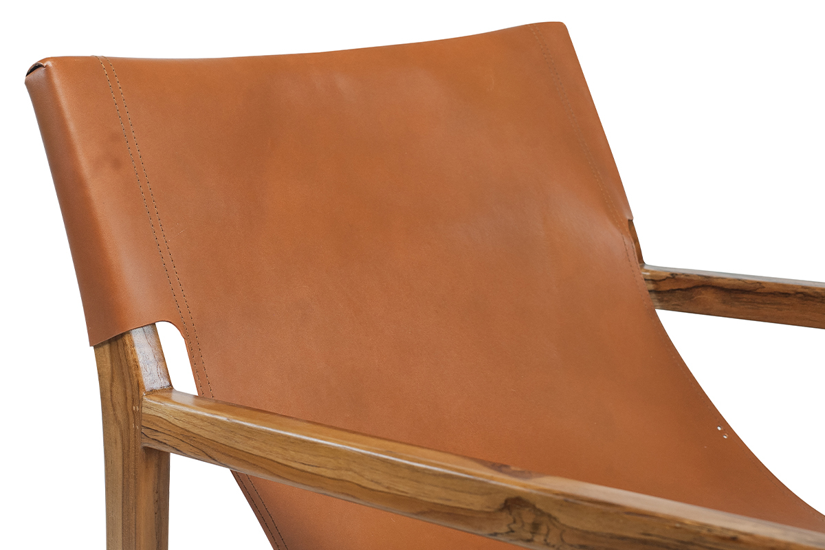 Conçue en teck massif et en cuir de vache marron clair, cette assise décontractée affiche une silhouette terriblement tendance. Grâce à l'association de ces deux matières brutes, ce fauteuil est une belle pièce de caractère qui donne du cachet à la décoration d'intérieur. Sa structure en teck en fait une pièce de mobilier aussi jolie que robuste. Ce bois tropical est apprécié pour sa solidité. On aime particulièrement ses tons naturels qui lui permettent de se fondre dans toutes les pièces de la maison. Fabriqué artisanalement, ce fauteuil est parfait pour les intérieurs en quête d'authenticité !