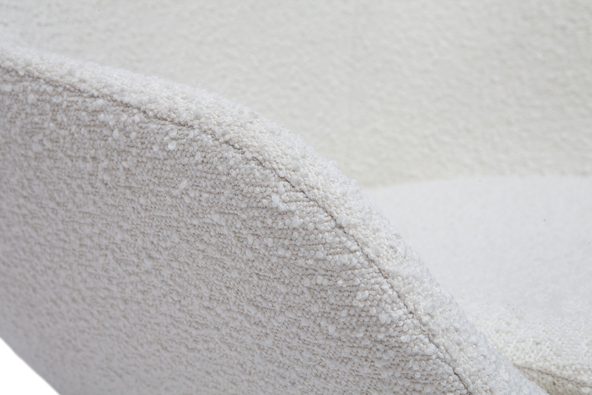 Habillé d'un superbe tissu effet laine bouclée écru, MAYNE participe pleinement à l'écriture d'une ambiance ultra chaleureuse. Douce et réconfortant par essence, ce revêtement molletoneux épouse joliment les courbes de cette assise au design unique.