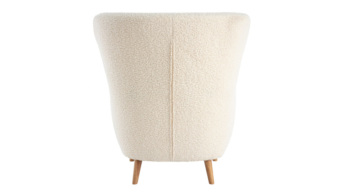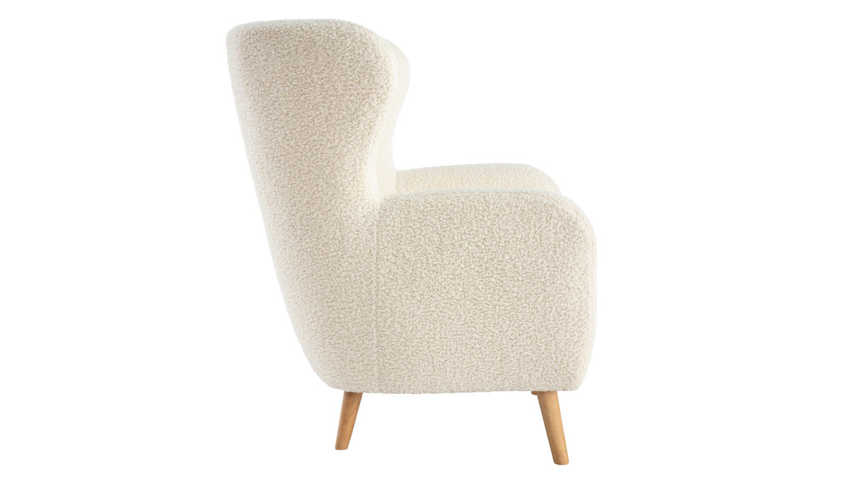 Fauteuil scandinave en tissu effet peau de mouton blanc et bois clair KORO