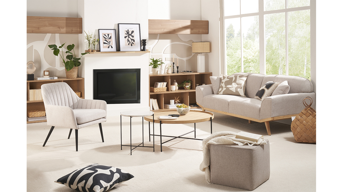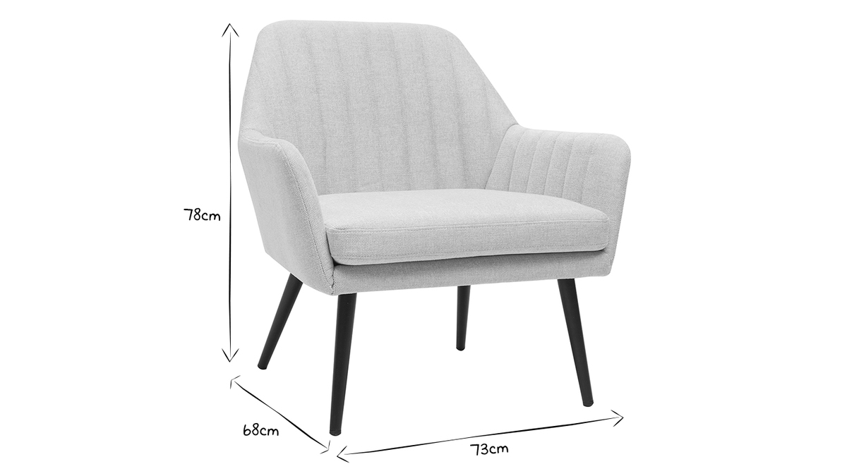 Qu'il prenne place dans un séjour ou dans une chambre, ce fauteuil aux volumes harmonieux nous enveloppe de sa douceur. Avec ses accoudoirs évasés et son assise généreusement rembourrée (densité de la mousse 30 kg/m3), il offre un excellent confort au quotidien. Vous appréciez également la texture unique de son tissu effet velours texturé de couleur beige (95% polyester, 5% nylon). Perché sur quatre pieds fuselés en métal noir (H27 cm), ce fauteuil spacieux propose un beau volume d'assise.