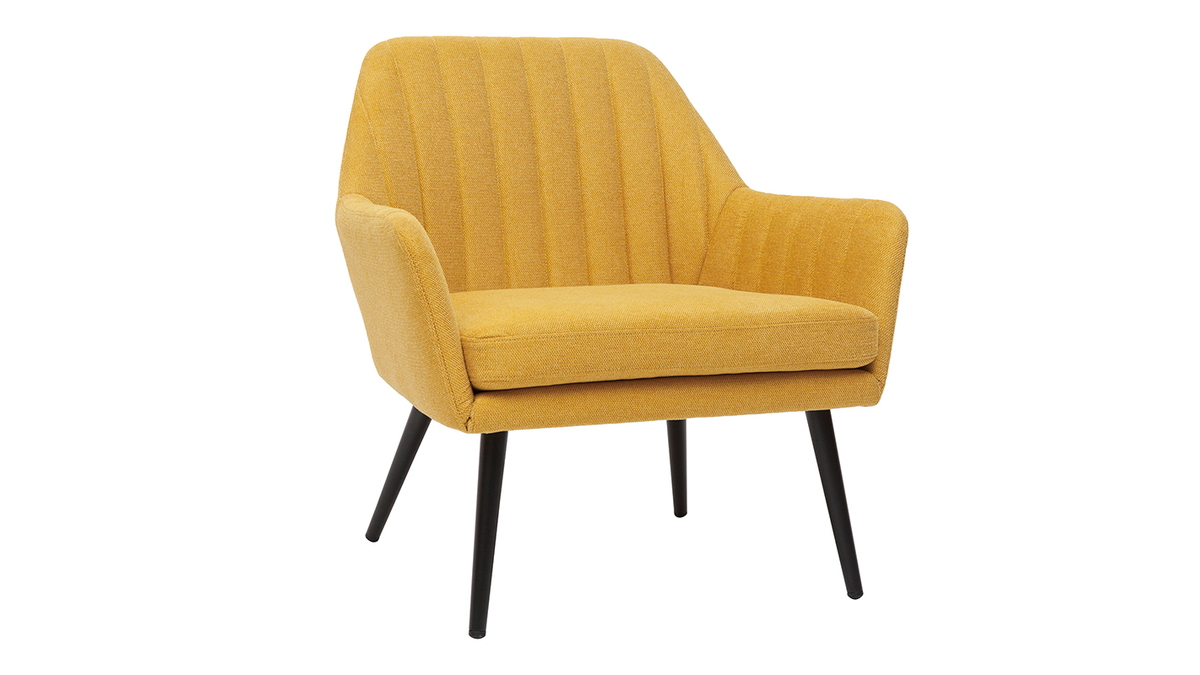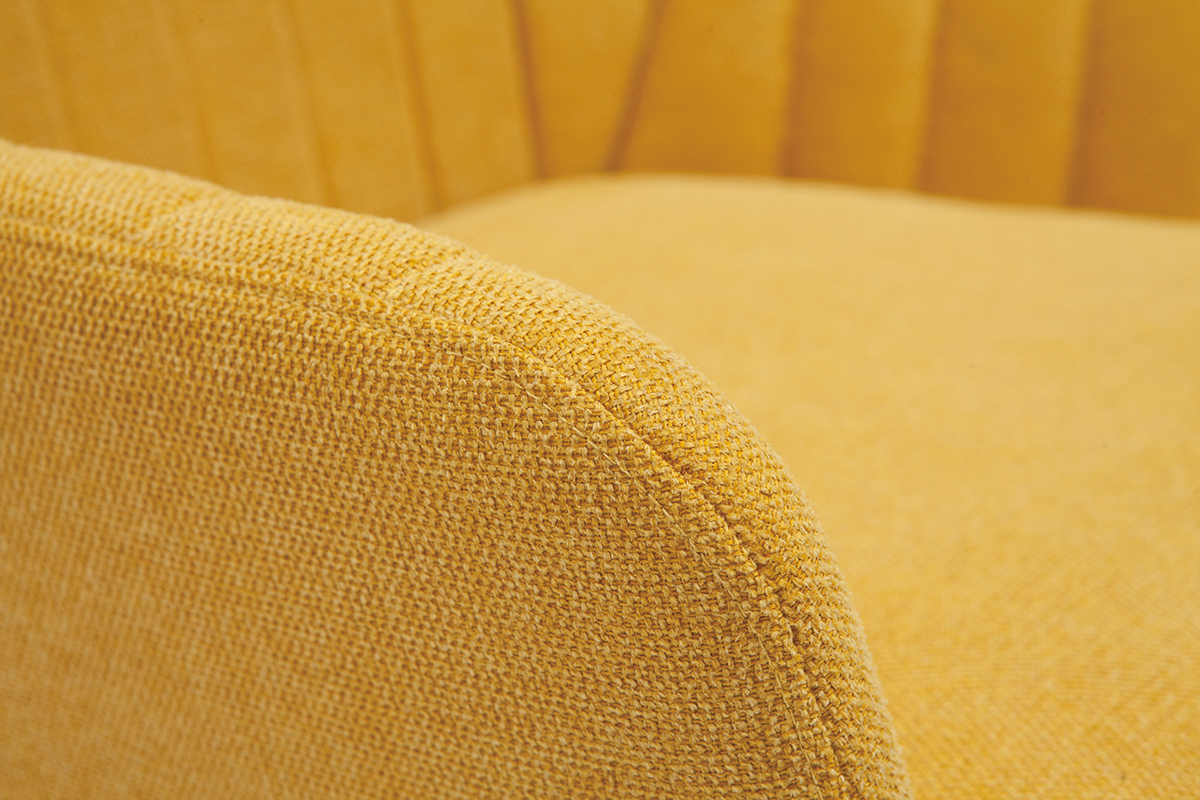 Qu'il prenne place dans un séjour ou dans une chambre, ce fauteuil aux volumes harmonieux nous enveloppe de sa douceur. Avec ses accoudoirs évasés et son assise généreusement rembourrée (densité de la mousse 30 kg/m3), il offre un excellent confort au quotidien. Vous appréciez également la texture unique de son tissu effet velours texturé jaune moutarde (95% polyester, 5% nylon). Perché sur quatre pieds fuselés en métal noir (H27 cm), ce fauteuil spacieux propose un beau volume d'assise.